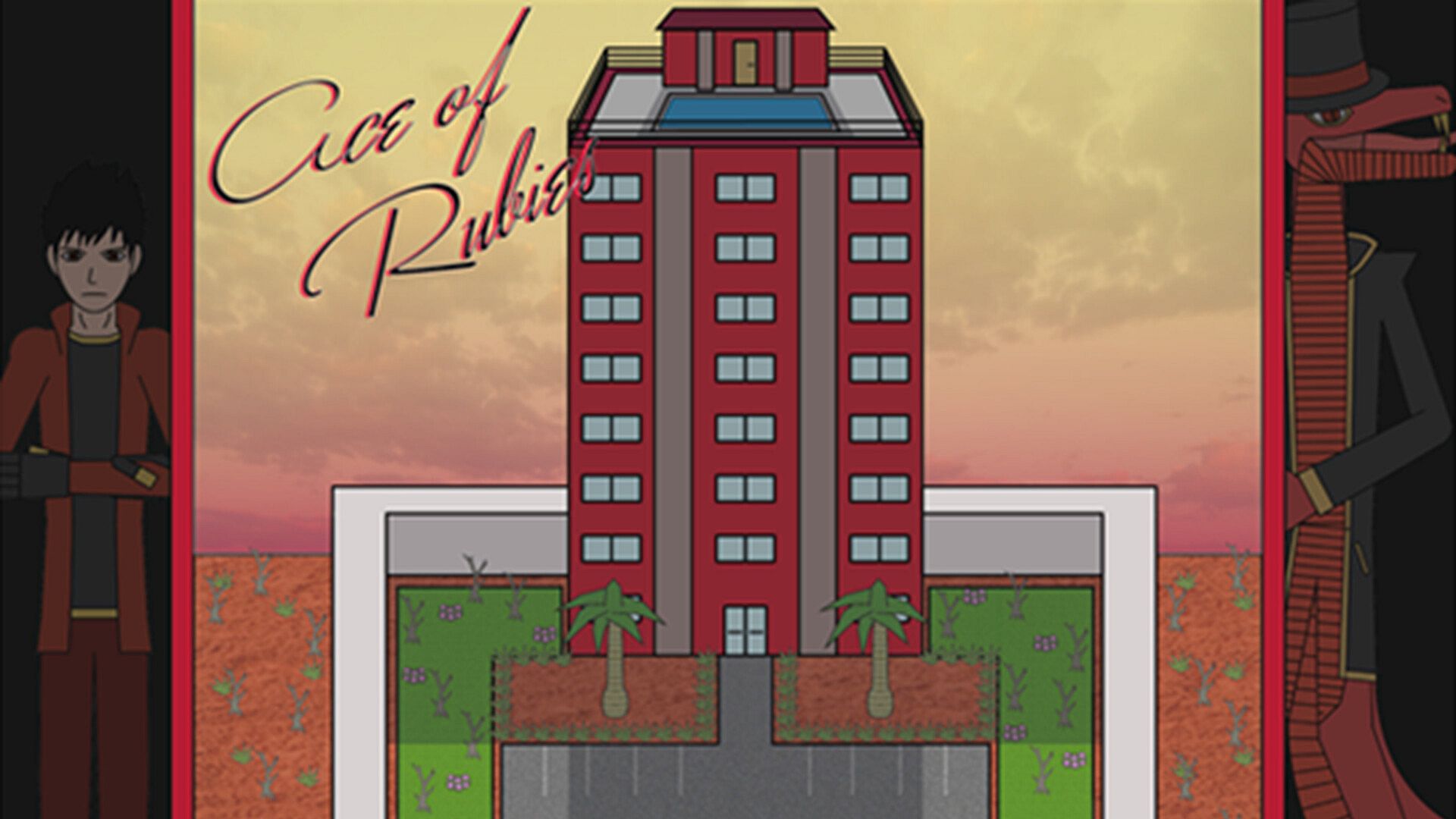 Ace of Rubies is a short adventure alongside the desert highway. You are trapped inside an evil hotel, and must get through the floors to defeat its manager and leave. You will use both sword and magic to fulfil this goal.