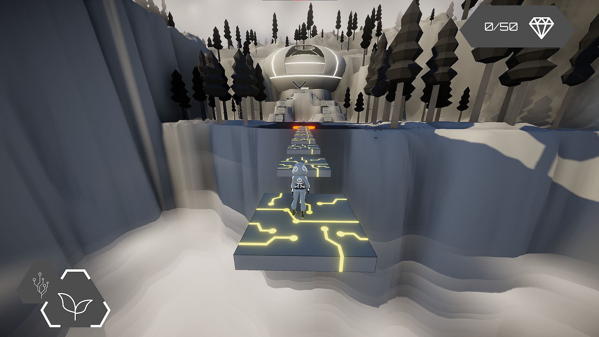 A lush and thick forest full of trees, vines, a big lake, ancient ruins, a swamp, and a big temple. Find your way through challenging platforming sections, and try to solve an ancient light puzzle to open up a path towards your goal!