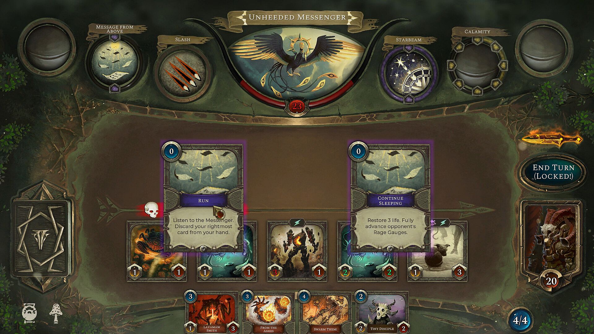 Hunt through the wastelands for colossal Beasts in this roguelike deckbuilder. Beware! Beasts grow stronger during battle, allowing them to consume your creatures or counter your spells. Carve profane Gifts from these behemoths and grow stronger to serve your Patron! But serve them to what end?