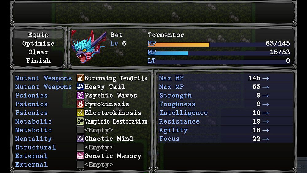 • 150+ Mutagenes to equip to your party, including a sizeable number of unique effects, like draining health or poisoning the enemy with certain attacks, gaining resources when reduced below half HP, or becoming an energy being whose physical attacks deal Radiant damage