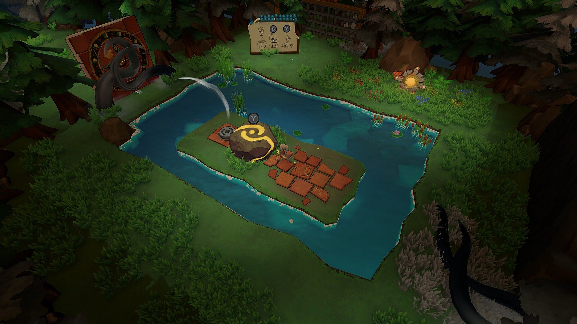 Solve the intricate mechanisms that keep the large doors open, built to block off the natural flow of magic. By restoring this flow of magic you cause a temporary power surge in the area, causing the machinery there to break, freeing trapped elemental spirits and returning life to the area