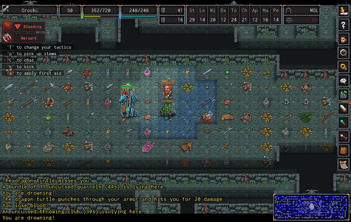 ADOM is primarily known for being the first roguelike to include vibrant towns, NPC dialog, and quests, but it offers more than just a rich story line in a complex fantasy world: