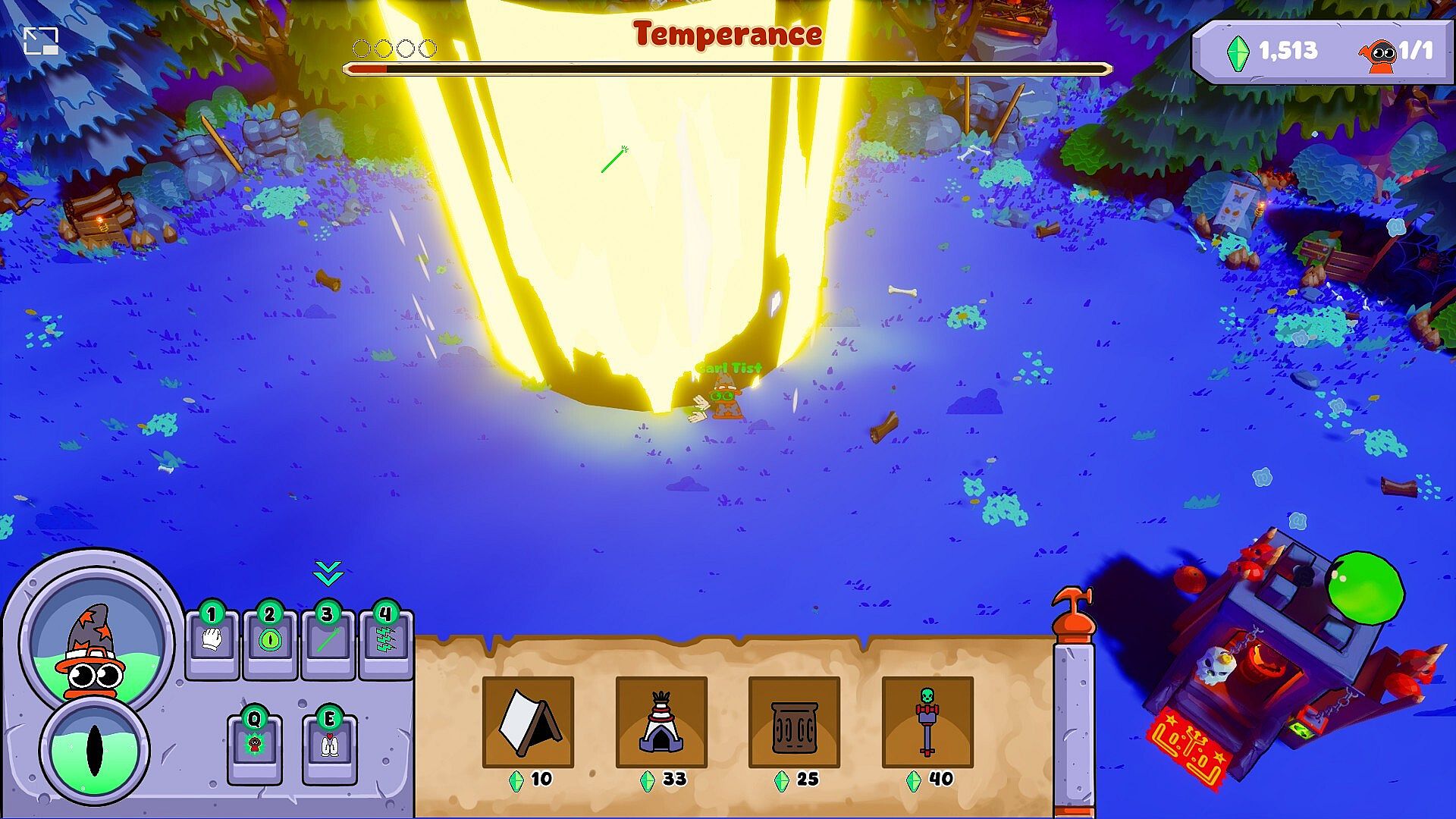 Drain your culties' life force to cast spells in order to defend your cult from incoming holies!