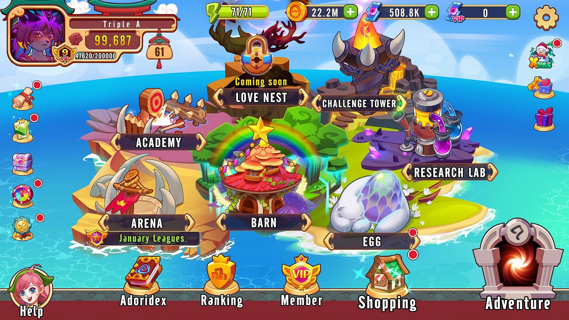 In Adorimon - Arena of Ancients, you would be able to adopt and train powerful-but-adorable creatures called "Adorimon". Leveling, feeding, teaching, evolving, there are tons of activities you can do to unlock the full potential of your Adorimons. Prepare a decent team to explore the story, climb Challenge Tower, and duel with other players.