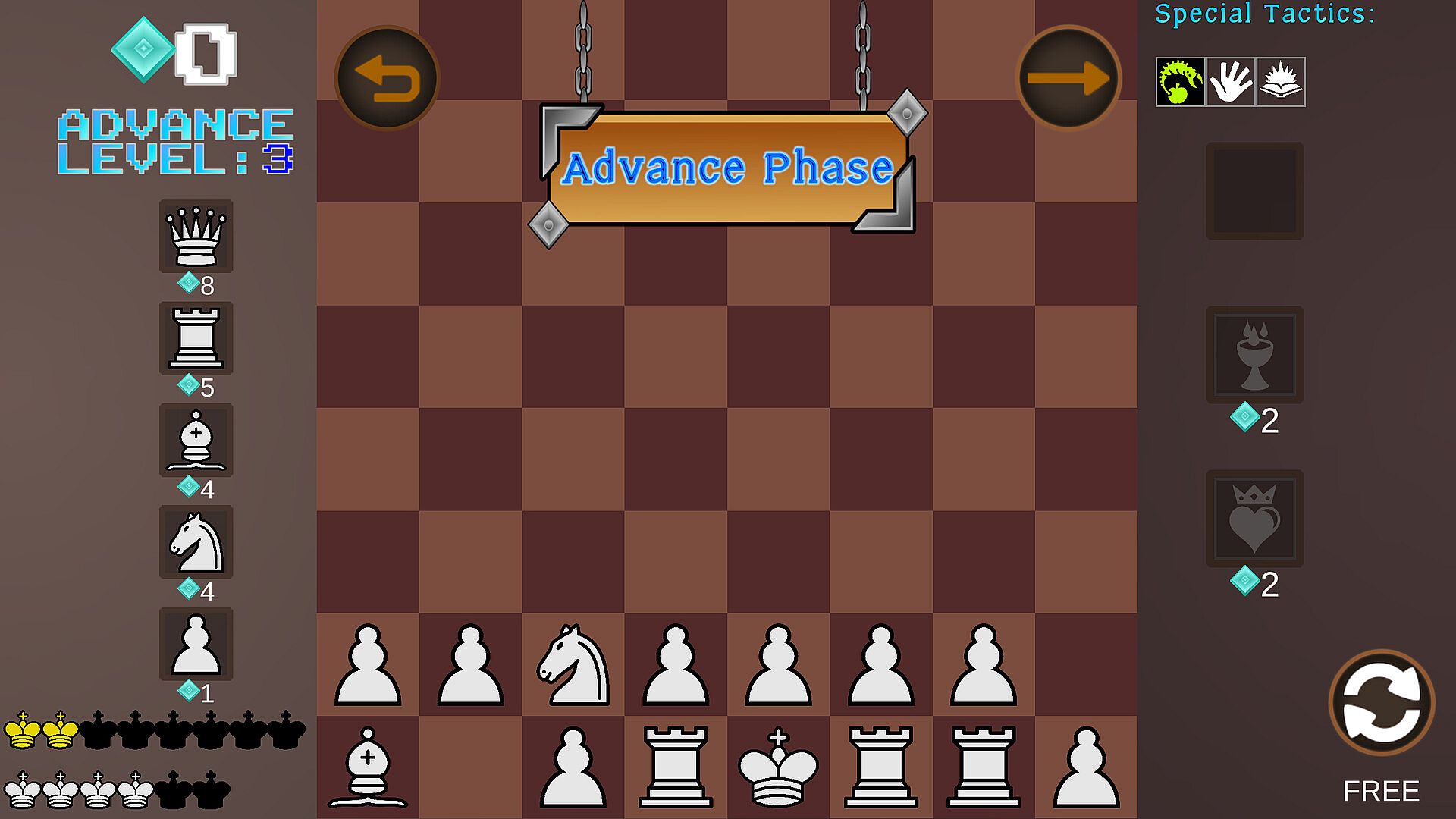 Special tactics form the backbone of customization in Advancing Chess. As you advance, you unlock abilities that start limited but grow through acquisitions, including enhanced versions that introduce new strategic dimensions. This system rewards repeated play, as tactics persist and evolve across runs.