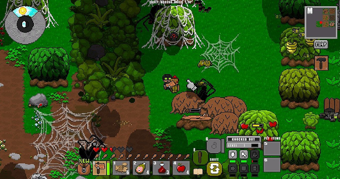 Explore a vast procedurally generated open world packed with diverse biomes, wildlife, and monsters in this sandbox survival action RPG. A dynamic day/night cycle shifts gameplay as you navigate dangers, while deep cave systems hide treasures amid powerful foes that shun sunlight. Craft weapons and gear from gathered materials and loot, then build and decorate a personalized home. Clone custom party members in a vat, tweak their AI, and train a pet attack dog that evolves with new skills. Fans of open-world crafting, base building, and party management in procedurally generated environments will find a deep loop here.
