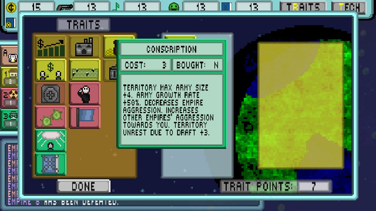 - Spread the adoption of traits among your empire to grant bonuses and influence how the people act.