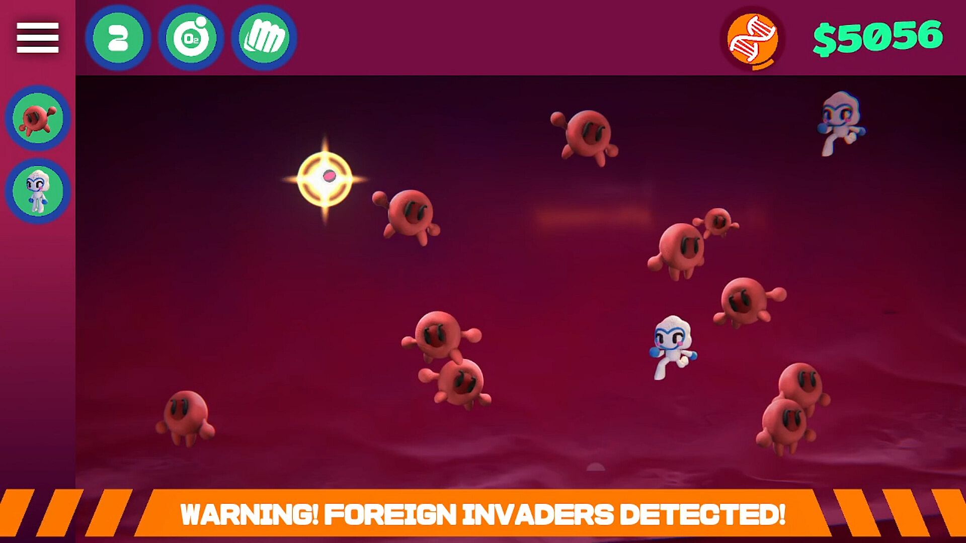 By keeping cells alive, you earn coins which can be invested in upgrades to boost your clicking power, automate defenses with White Blood Cells. Completing levels will earn you more and more DNA points to spend in a expansive Skill Tree!