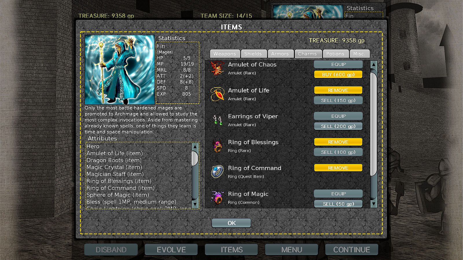 ALIGNMENTS such as Evil and Holy. Units from opposite sides won’t like each other and may desert. A bit of diplomacy (or charisma!) is needed to manage such relationships.