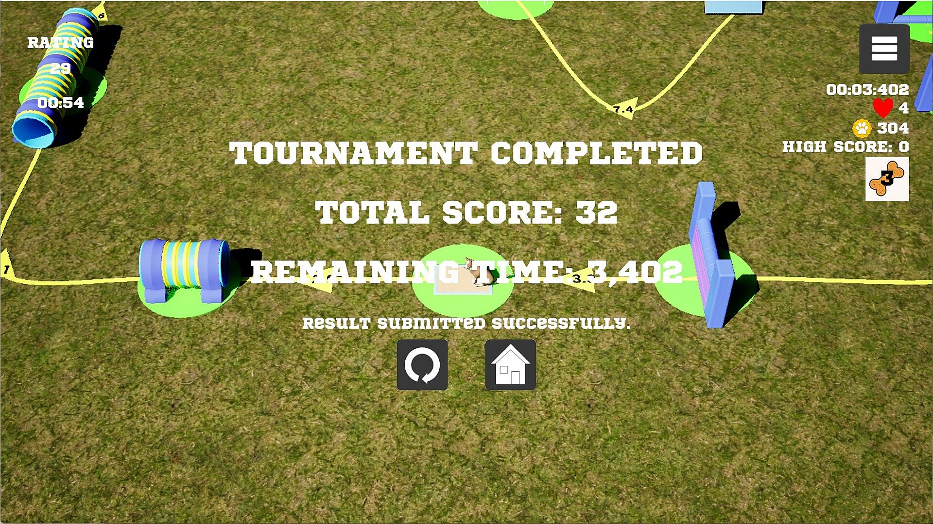 For every successfully completed parkour you will get the trophies based on the parkour difficulty and your results. You can also win the trophies by hosting or attending the tournament. The trophies can be used for getting new dogs or buy biscuits for refiling dogs’ stamina.