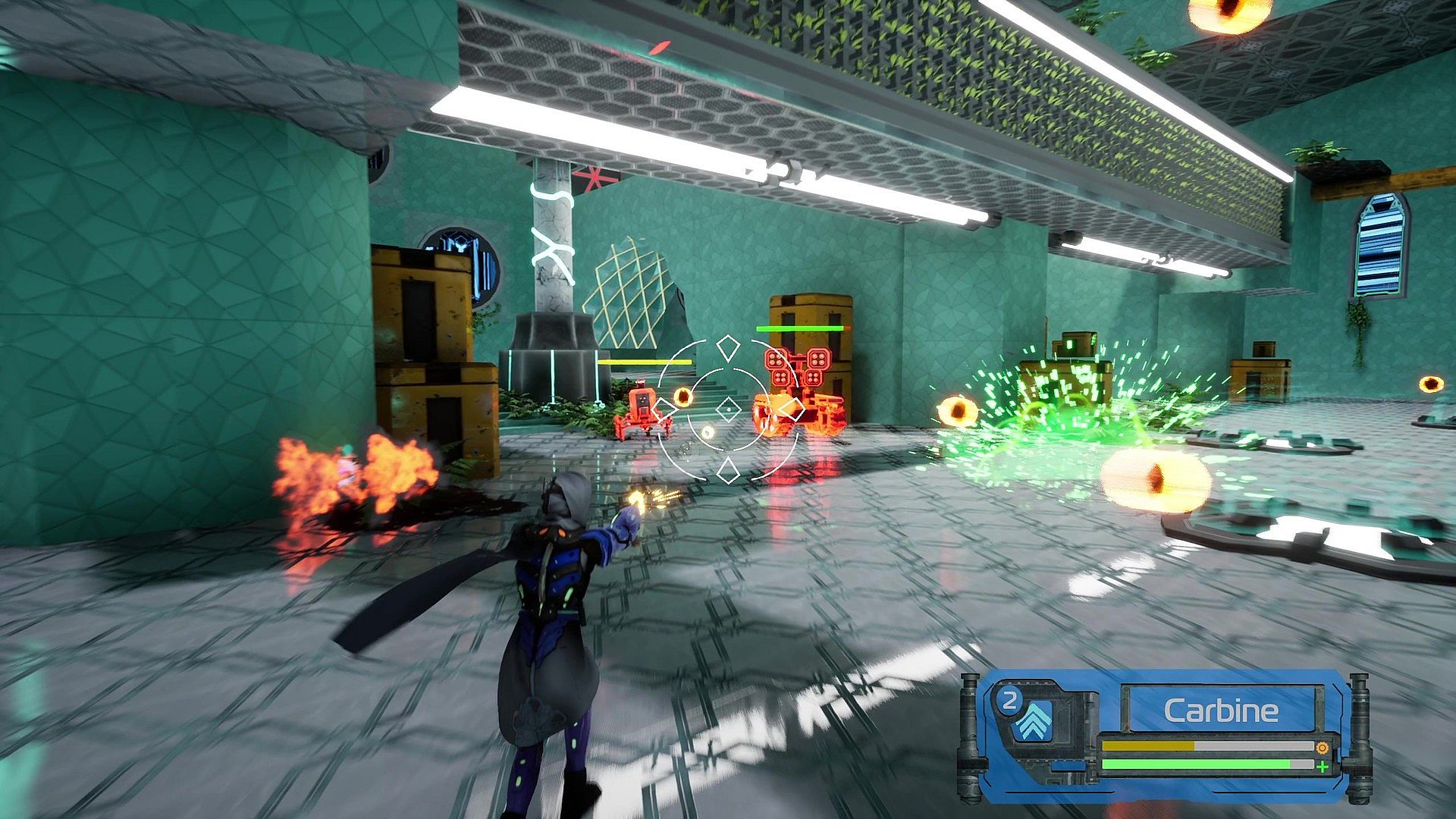 Choose between 3 distinct guns to destroy the once-dormant robots defending the Branch from outsiders. With various weapons such as the Disruptor, Carbine, and Scattershot, decide how you want to tactfully eliminate the threats as you use Neziha’s highly mobile thrusters to dash and leap around the massive AGRYOS Facility.
