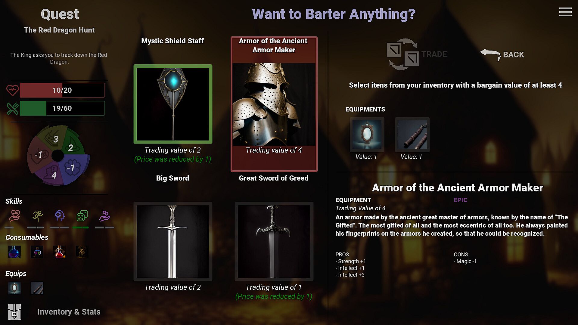 • Manage Your Inventory: Will you risk adventuring with bad items to sell them later, or will you get rid of them to travel safely?