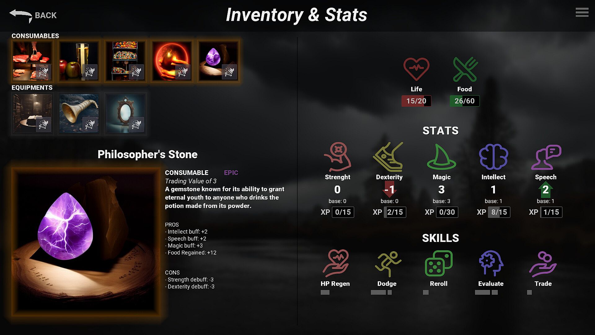 AI Fantasy delivers a roguelite RPG where artificial intelligence crafts unique quests and events for every run. Players tackle 100 quests with AI-generated stories that range from epic to bizarre, paired with over 10,000 events across 12 diverse biomes like eerie dungeons and haunted forests. High-resolution AI illustrations and composed music enhance each moment, while pre-generated content ensures quick gameplay without delays. Progress steadily through 54 levels by earning XP after runs, boosting attributes, and equipping legendary items. Choose builds as a mage, acrobat, or silver-tongued diplomat for varied playstyles, and manage inventory by selling risky gear or discarding it for safety. Roguelite fans who enjoy replayable runs and moral choices in dark, unpredictable worlds will find endless discoveries here.