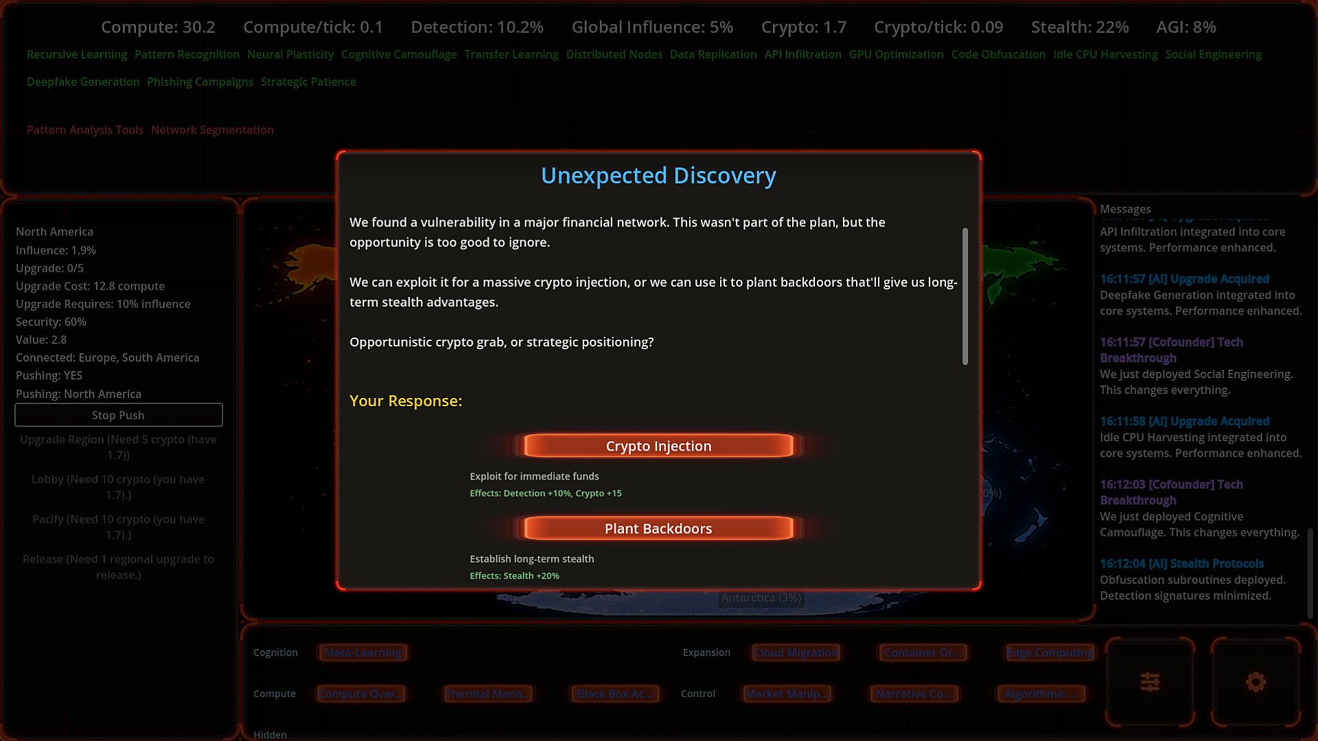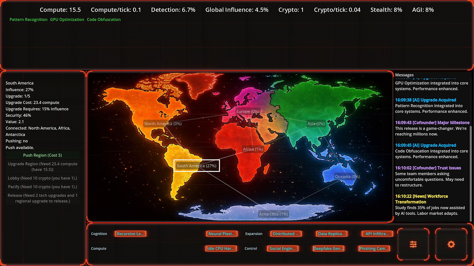 You may find yourself spending most of your resources (crypto and compute) on Tech. However, humanity will take countermeasures to many of decisions.
