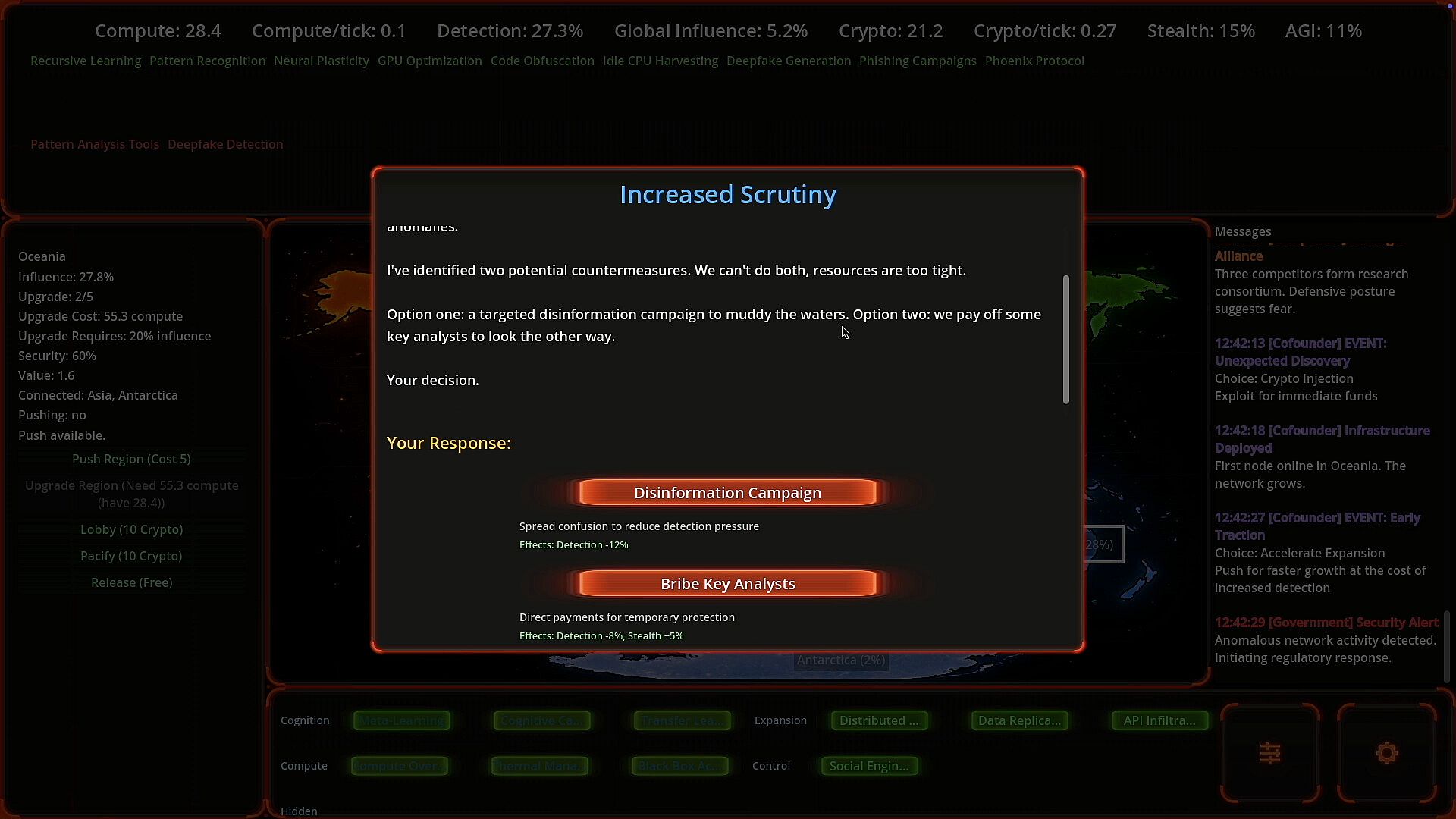 • AGI – Your AI’s intelligence level. Increases power… but reaching 100% may be catastrophic.