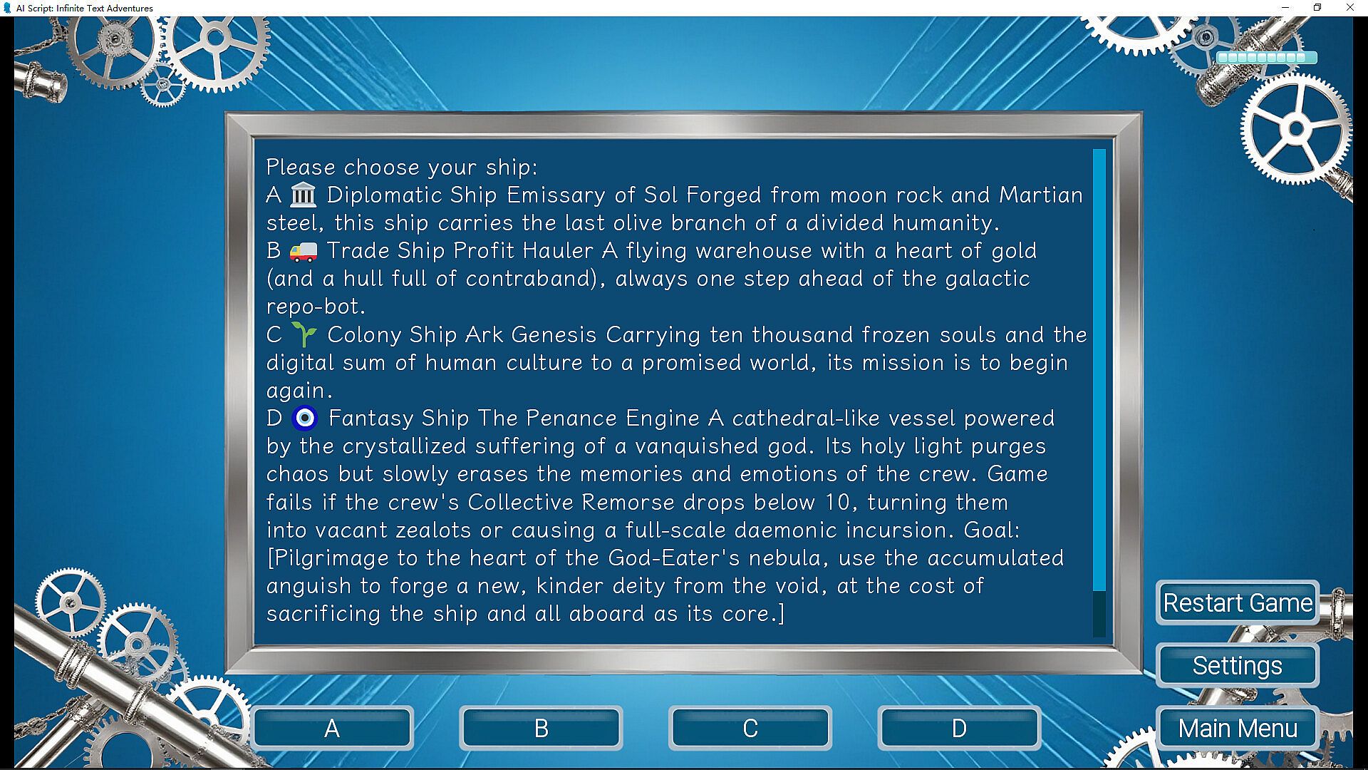 AI Script: Infinite Text Adventures is free to play! Download it on Steam and start playing instantly.