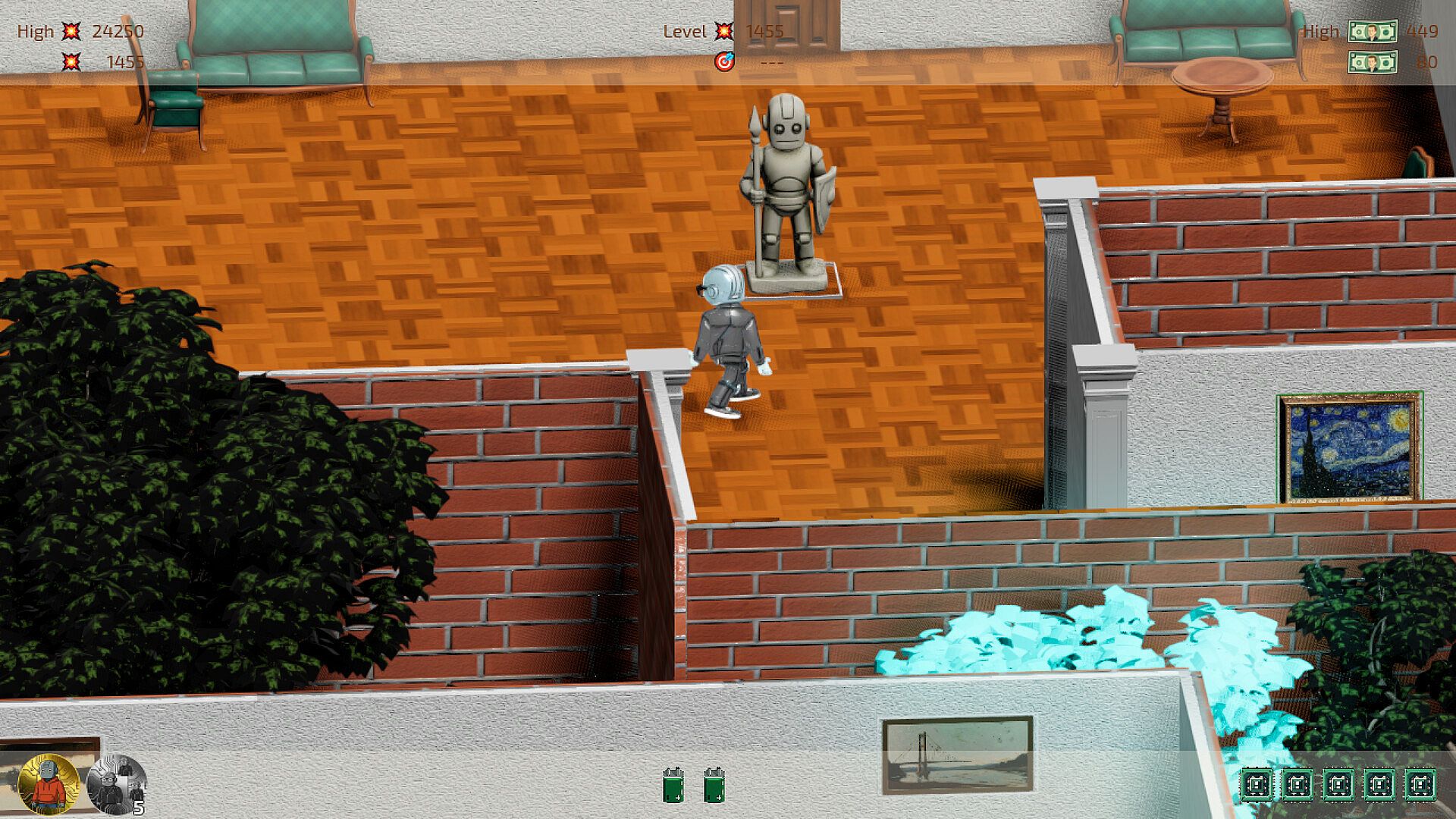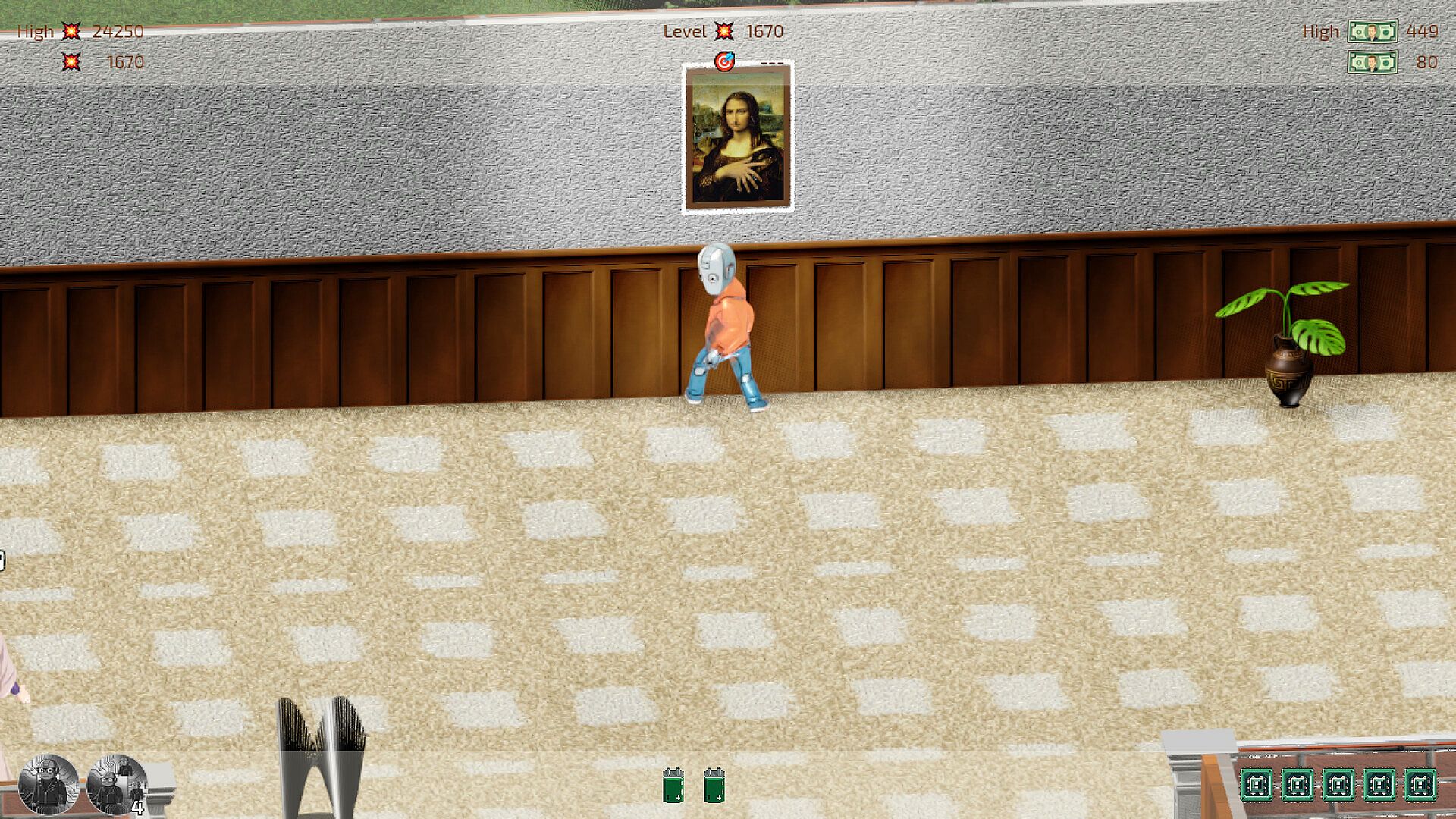 Navigate through museum levels. Interact with art pieces to swap them with AI-generated content. This will gain you AGI 💥 points. You practice your natural language and knowledge skills by chatting with patrons. This will gain you additional funds to progress your training and data collection.