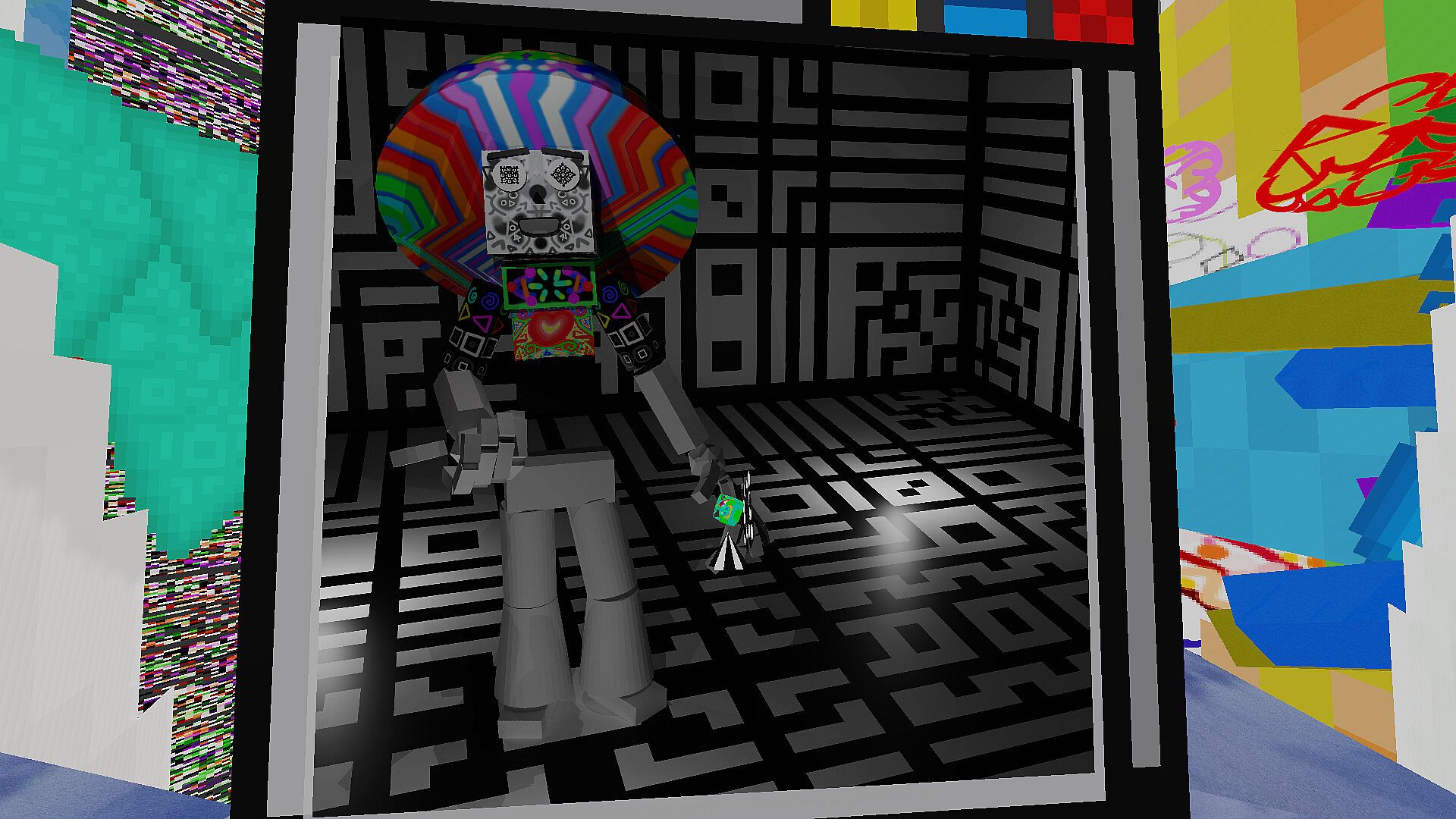 This game has a lot of chaotic and bright colors and flickering textures.