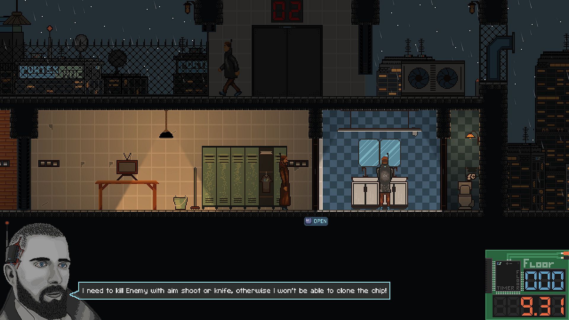 Your goal in AIgent is to destroy the satellite that keeps CortexSync’s AI grid online. Each floor is locked tight, guarded by machine shells wearing human faces. The only way up is through them. Kill them, clone their access code, unlock the elevator. But be warned: if you destroy the body, the chip is lost - choose your weapon wisely. Use the knife for a clean kill, or aim for the head if you need to shoot. Floor by floor, enemy by enemy. Reach the top, destroy the signal, and shut them down - for good.