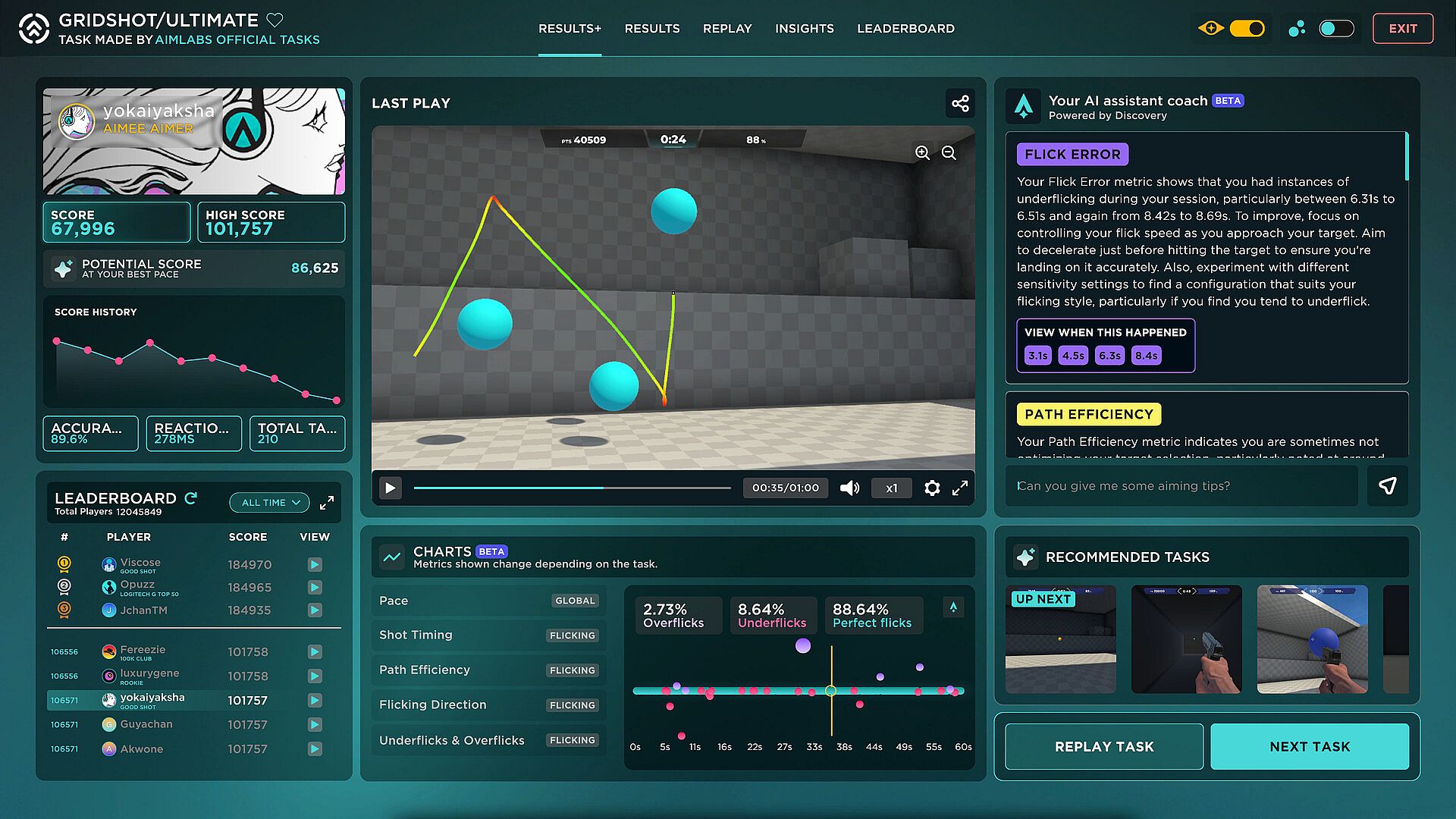 • Adaptive Tasks: Play every task at your optimal difficulty level to personalize your aim training!