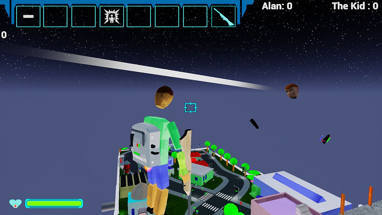 Alan can find Guns and rockets on the table to take out the Kid. Also on the map are some defensive items such as smoke bombs and a Jet Pack