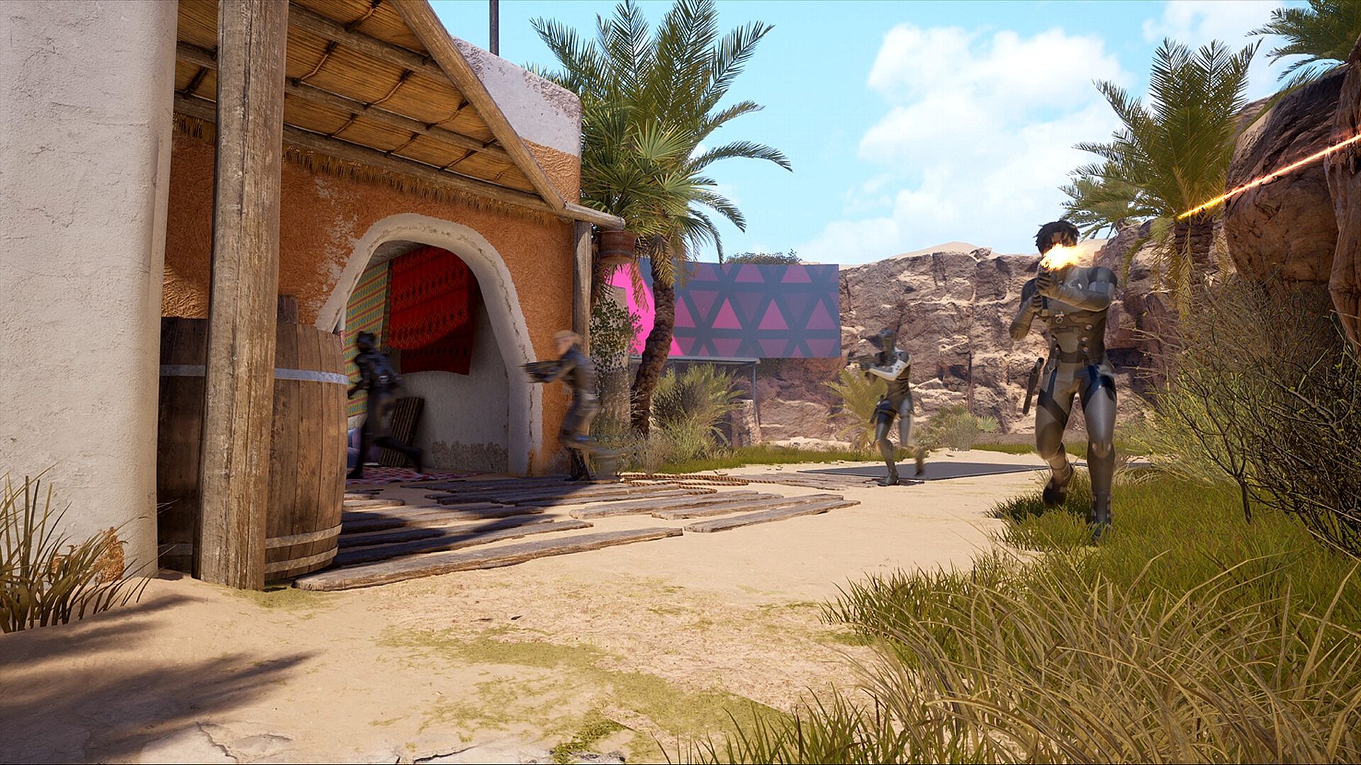 "Oasis" is our first map and it features everything from close-quarters combat to exterior sniper lanes. Bunker down and use the map’s tight interiors to fortify your position, or take the fight to the enemy. Choose your tactics, find your opponents weaknesses and outwit them. One team will take it all!