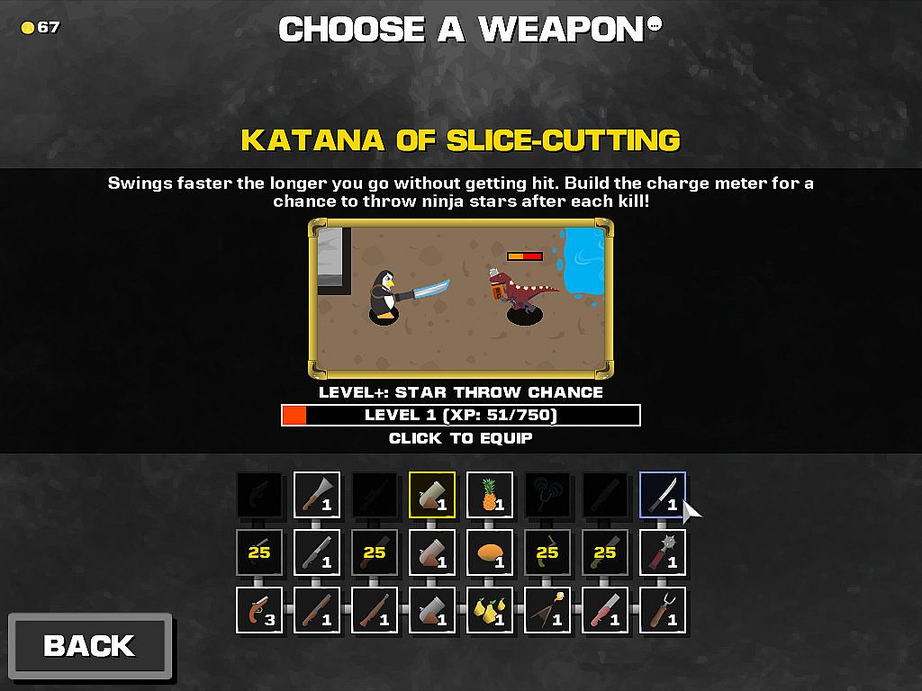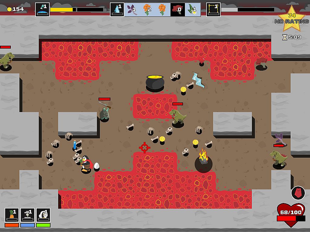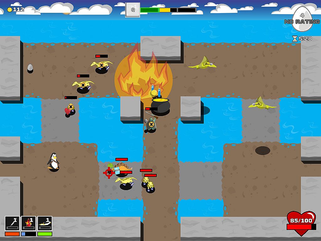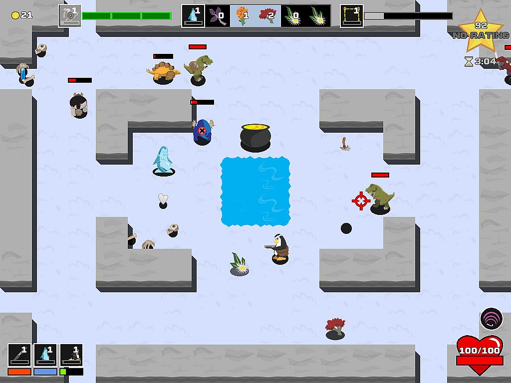 Take control of the Alchemist Penguin in the relentless battle against his dinosaur aggressors! Alchemist Penguin is an arcade-style action game where you are pitted in a stage against an army of dinosaurs under increasing difficulty. You are armed with a weapon, a potion and a technique—as well as a variety of single-round boosts and mode-specific abilities—to help you in your fight.