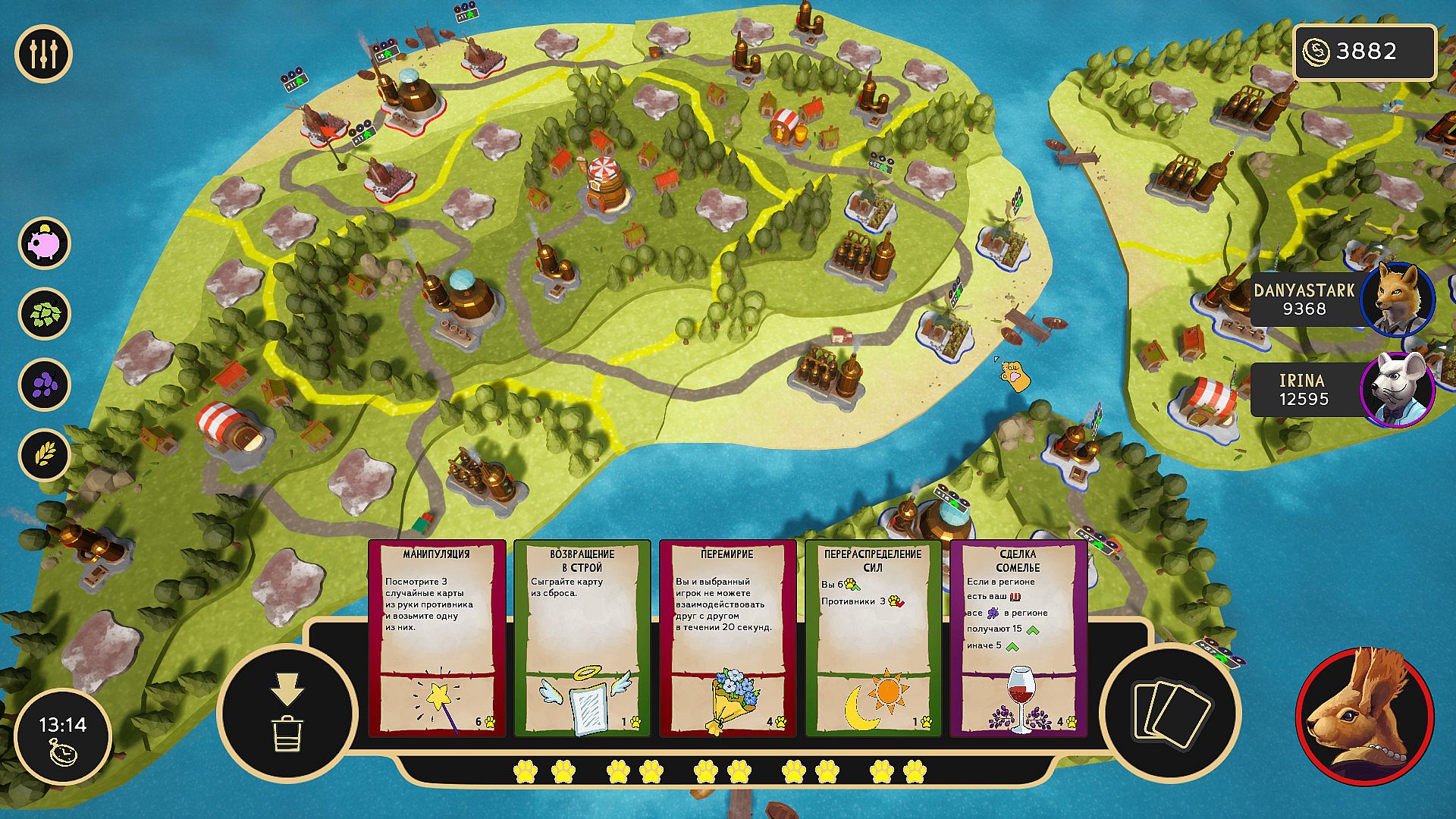 Real-time strategy meets card game action in Alcohol Empire. Players jump into battles with three characters, each equipped with ready-made decks that skip deck-building hassles. Deploy a mix of cards and buildings to outpace rivals, buying up enemy structures, swiping their cards, fortifying your own setups, or sabotaging theirs. The breakneck speed demands snap decisions over long plans, keeping every match intense and fresh. Unique visuals and audio amp up the charm across fast-paced multiplayer clashes. Strategy fans who thrive on quick thinking and adaptive plays will find their edge here.