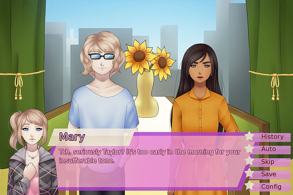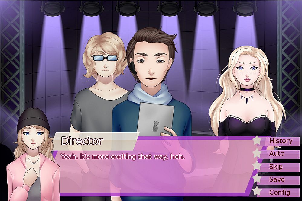 Alice in Stardom is a free 3~ hour long visual novel about Alice, a young intern working at Supernova, an idol competition when she's forced to be a competitor last minute. Now that she's in the competition, you get to determine whether she'll rise to the top or be eliminated. This game features 3 light dating sim routes to pick from where you can spend time with any girl you like and receive a different ending depending on which one you bond with the most.