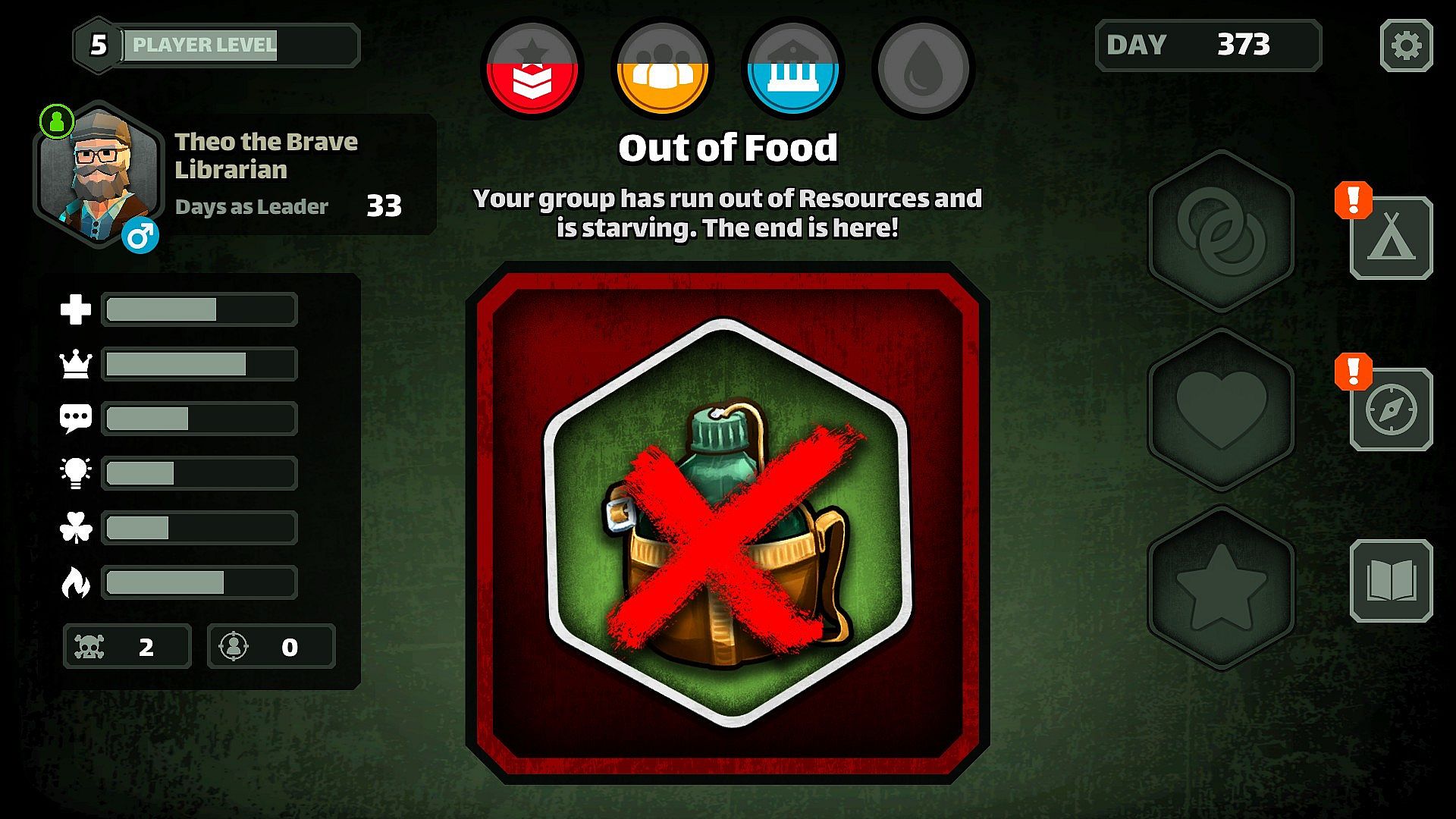 Strive for balance between rival factions and your limited resources. Soldiers protect the group from zombies and other hostiles, but they can go too far with their use of force. Followers take care of the camp, but can be very needy with their requests. Elders help lead the group, but can be overzealous with the power they wield. Food, water, tools and supplies your group needs to survive are in high demand but short in supply.