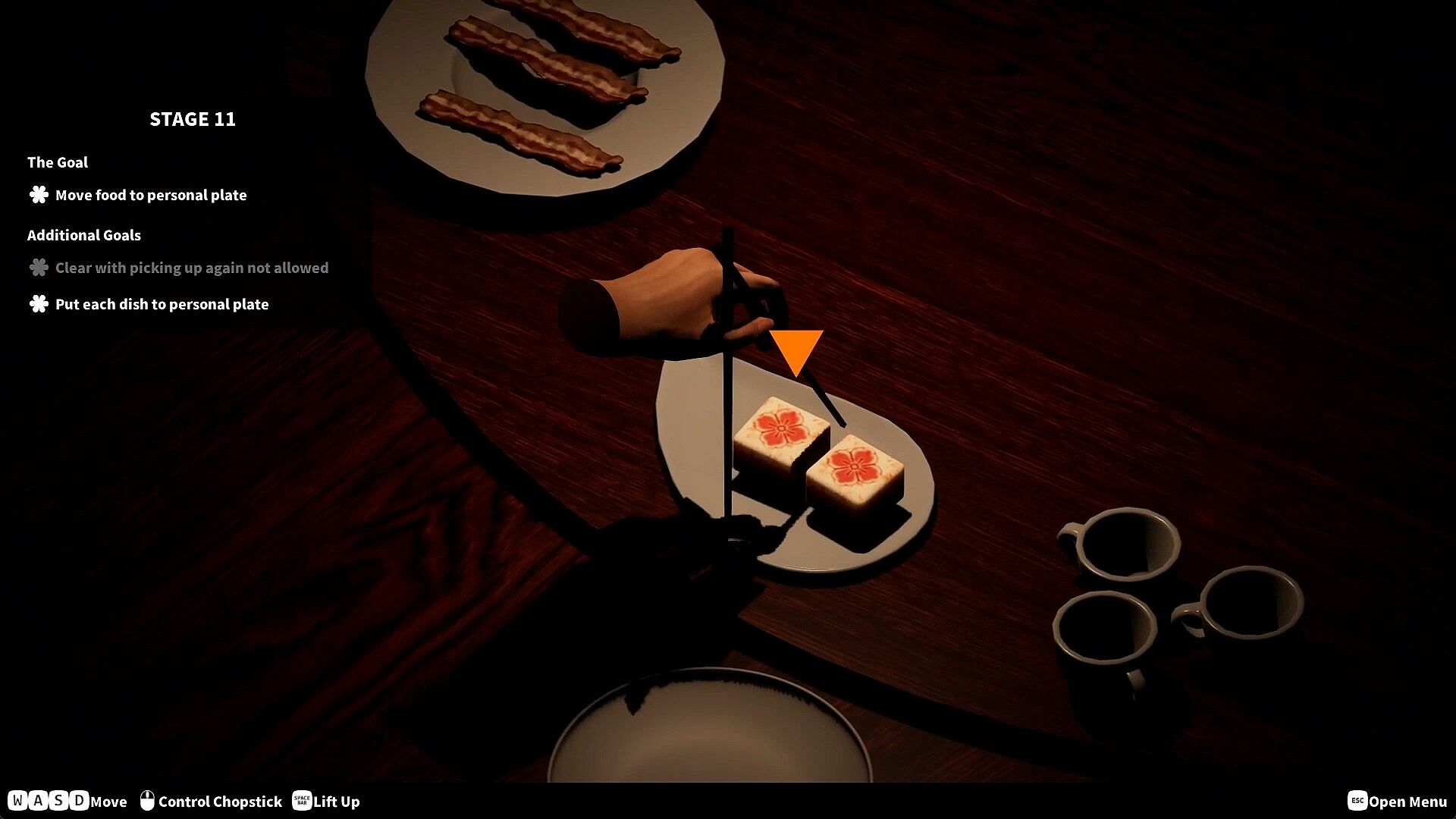 • Pick up and move food from plate to plate with chopsticks to solve puzzles.