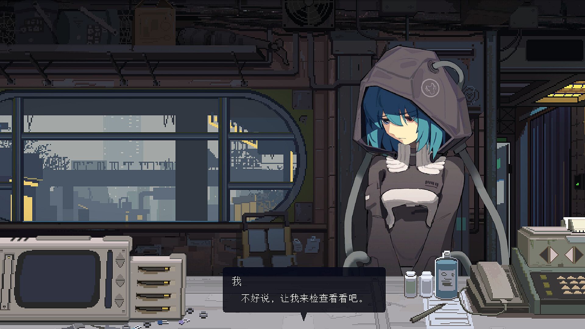 This is a story-driven cyborg doctor simulation game.
