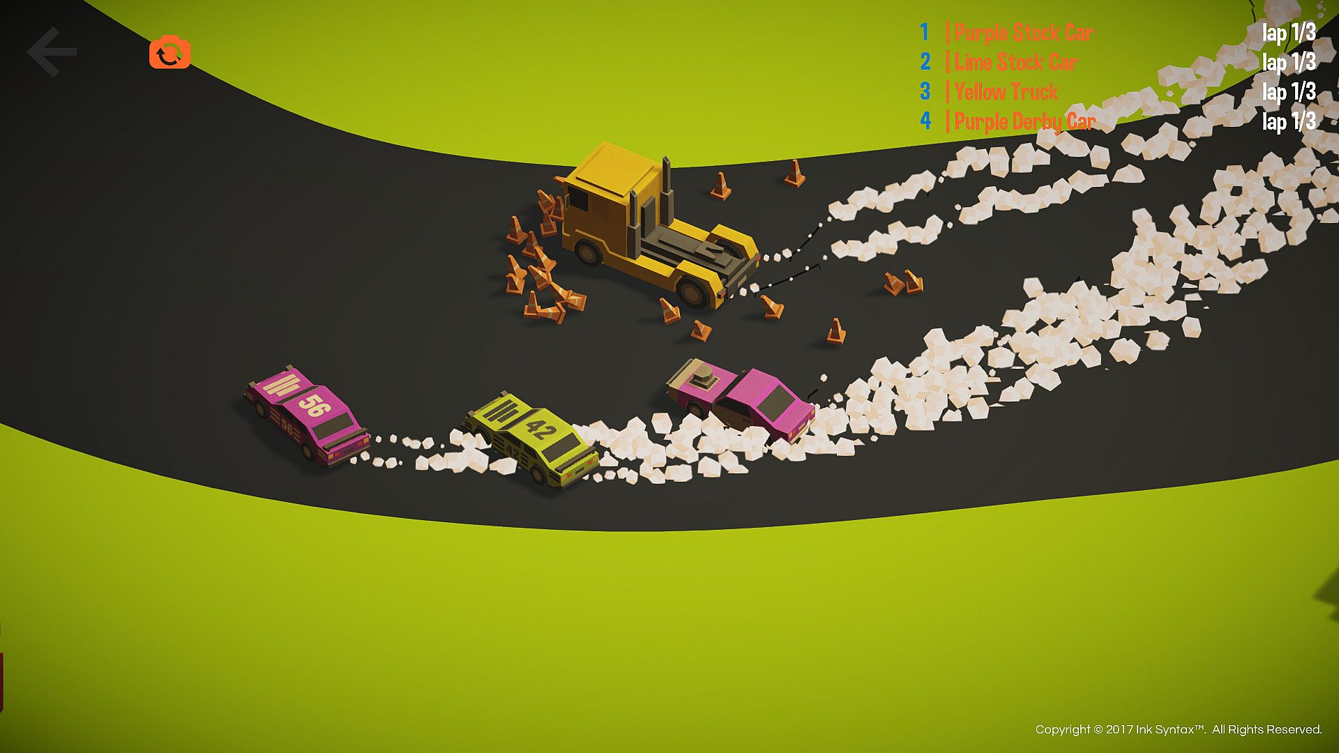 Push your driving skills to the limit in this vibrant, fun, arcade-style racing game against AI or with up to three other players either locally or via online multiplayer.