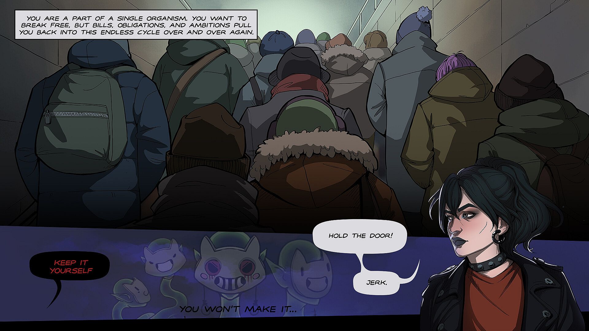 Personal experiences of battling depression are woven into the game through images, stories, and thoughts. The characters, each with their own destiny and sorrow, fight differently for the right to live without the perpetual internal struggle with themselves. You must uncover the mysteries in the city, save loved ones, and not lose to your own demons.