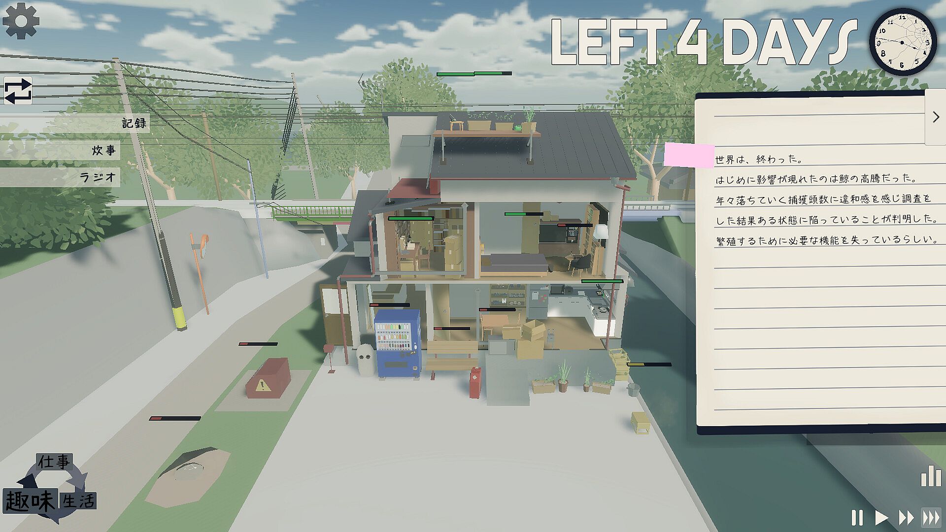 In a world where you are alone, you repeat your daily life in a nonchalant and somewhat joyful manner.