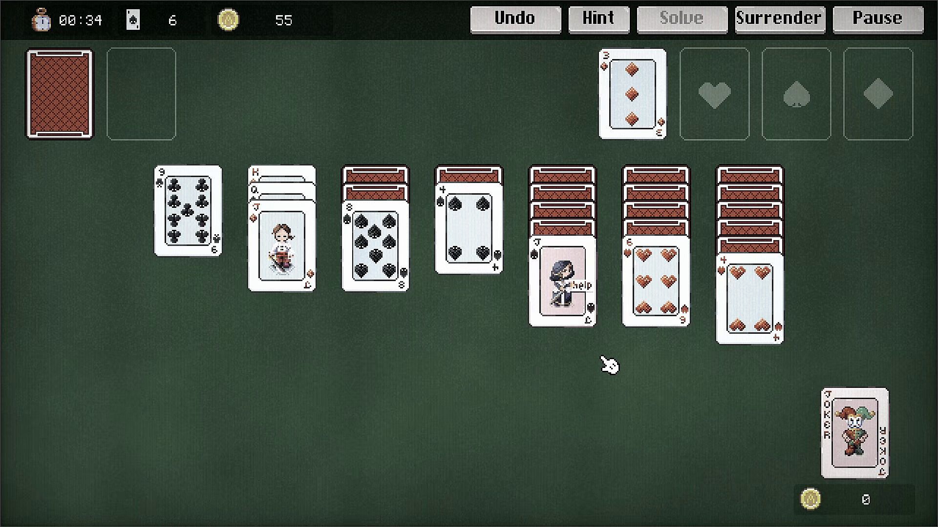 Alonitaire is a classic Klondike Solitaire with a polished retro presentation: nostalgic pixel art, a clear interface, and an original soundtrack.
