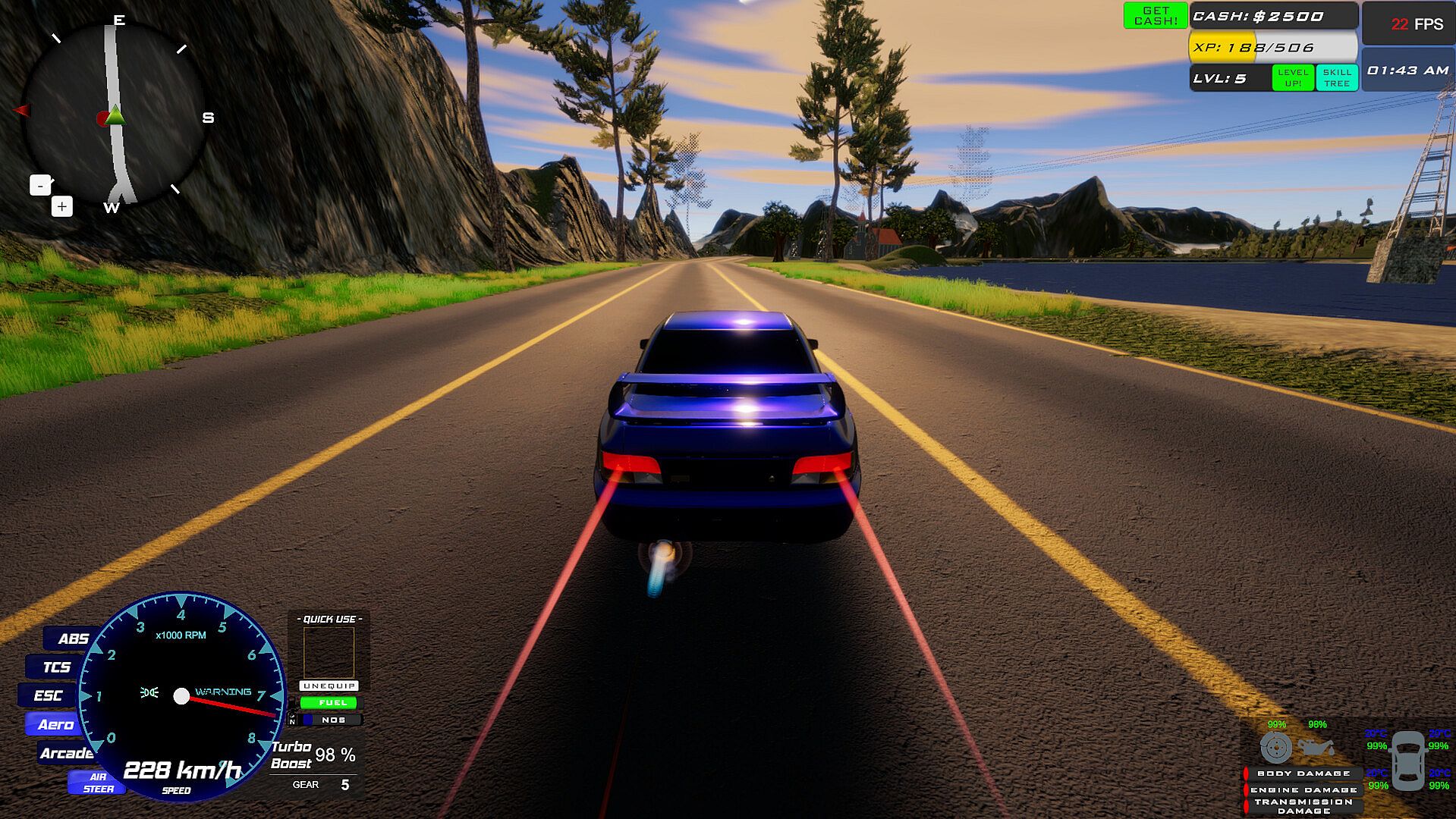 Build and tune your vehicles with deep mechanical customization: adjust suspension, gearing, tires, camber, turbo pressure, and more. Install aftermarket parts, optimize setups for different surfaces, and repair damage that affects performance over time.