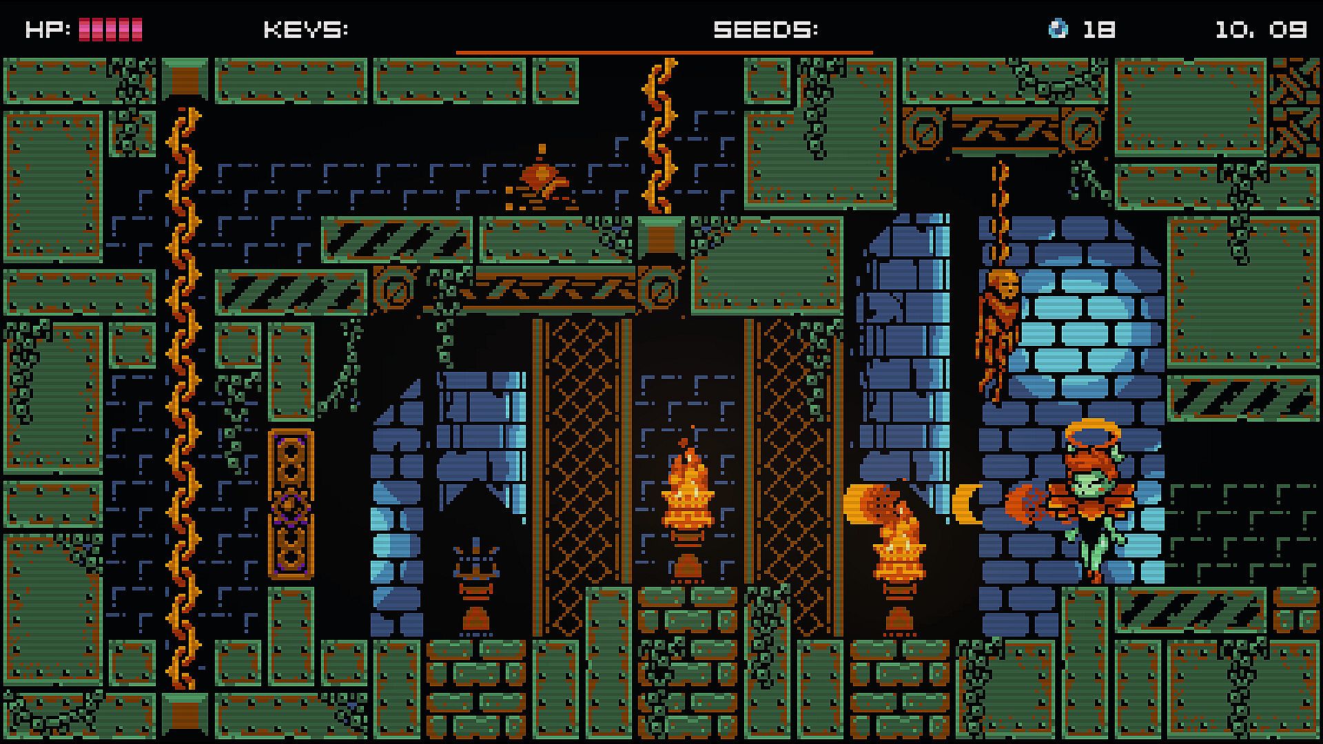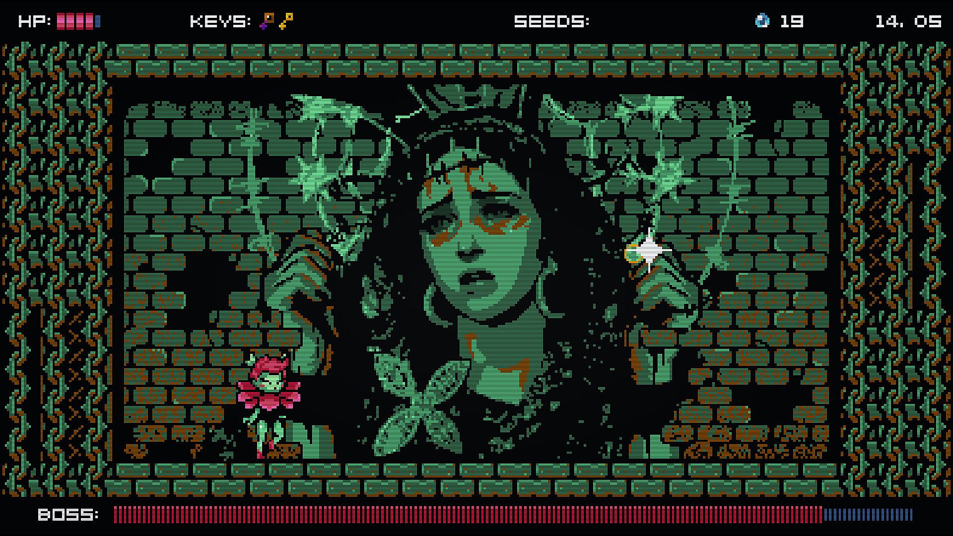 Alruna’s move-set is more expressive than ever. Super-jumps, bounces and Hyper-dashes allow her to reach all sorts of new places. The Blossom Blaster lets Alruna to shoot, and to bounce on her projectiles for an extra boost. Elemental power-ups can turn her into Fire Alruna, Water Alruna, Thunder Alruna and maybe more. Climbing Vines can grow from any surface. Bosses fill the whole screen, mini-bosses hide behind every corner. Entire hidden areas can be found under any innocuous rock. Everything is connected!