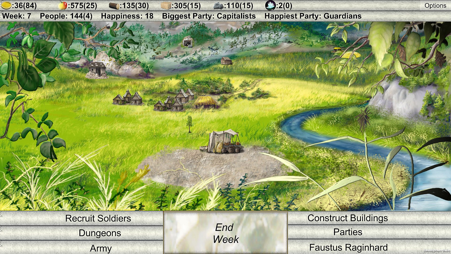 Five factions will make your life unbearable. Each week, you will be confronted with problems you have to solve. They can be anything: A peasant that needs food, drunk soldiers fighting, and many more! Make the correct decisions to not anger the factions, unless you don't want their help...