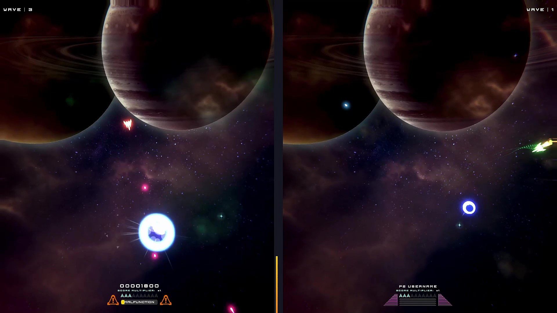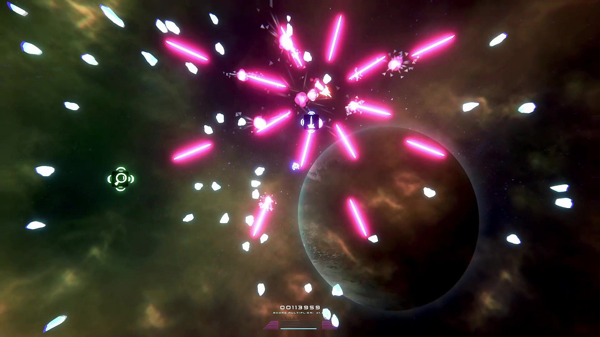Bullet-time teleportation. Insane screen-filling bosses. Unpredictable Roguelite runs. Global high scores. And co-op or split-screen battle game modes. All within the ever-changing beautifully illuminated depths of space.