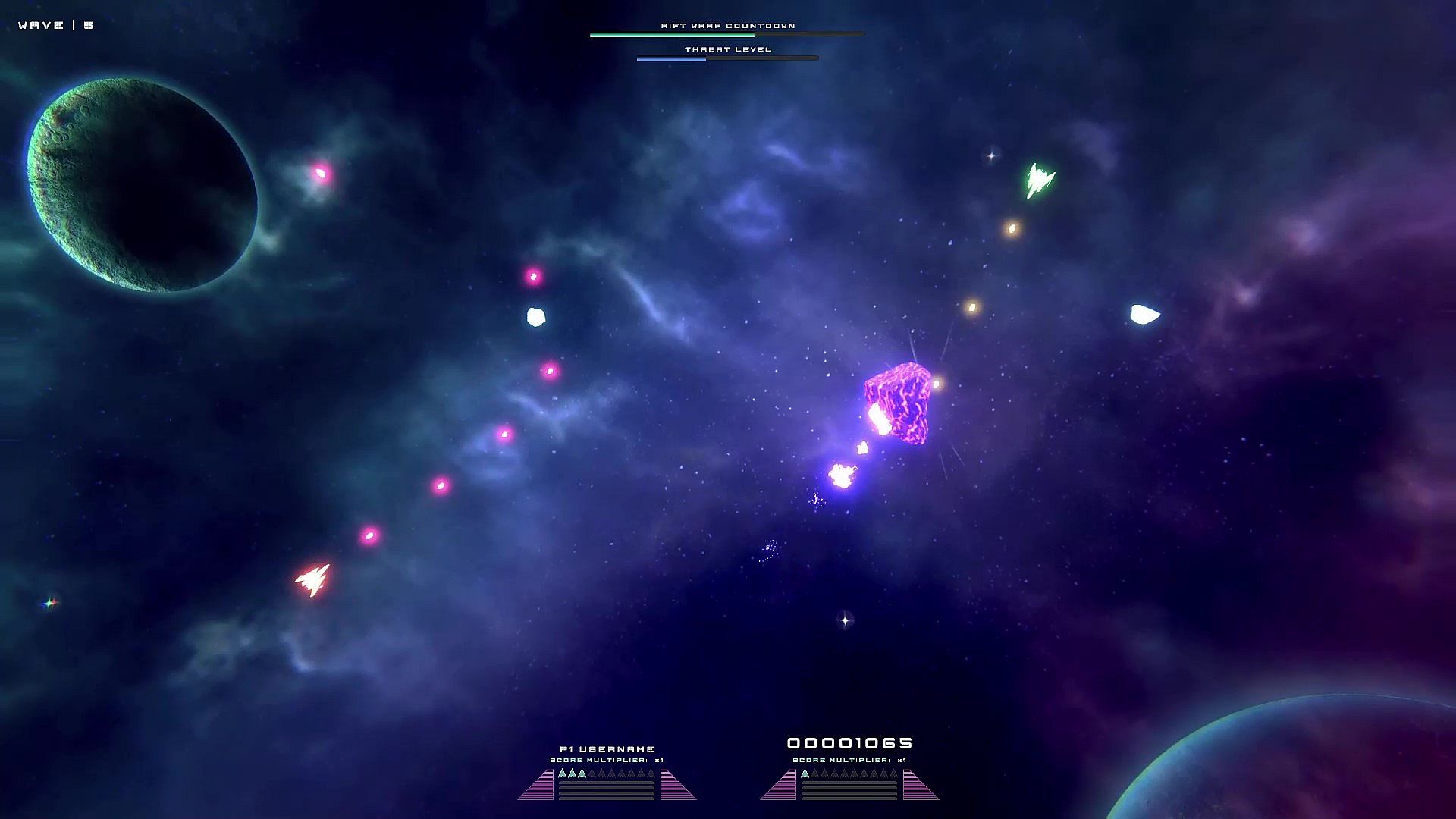 Rift-Warp through time and space in search of your prey. Ever-changing vibrant galaxies and randomized waves of enemies means an endless exploration of deep space. No two runs are the same.