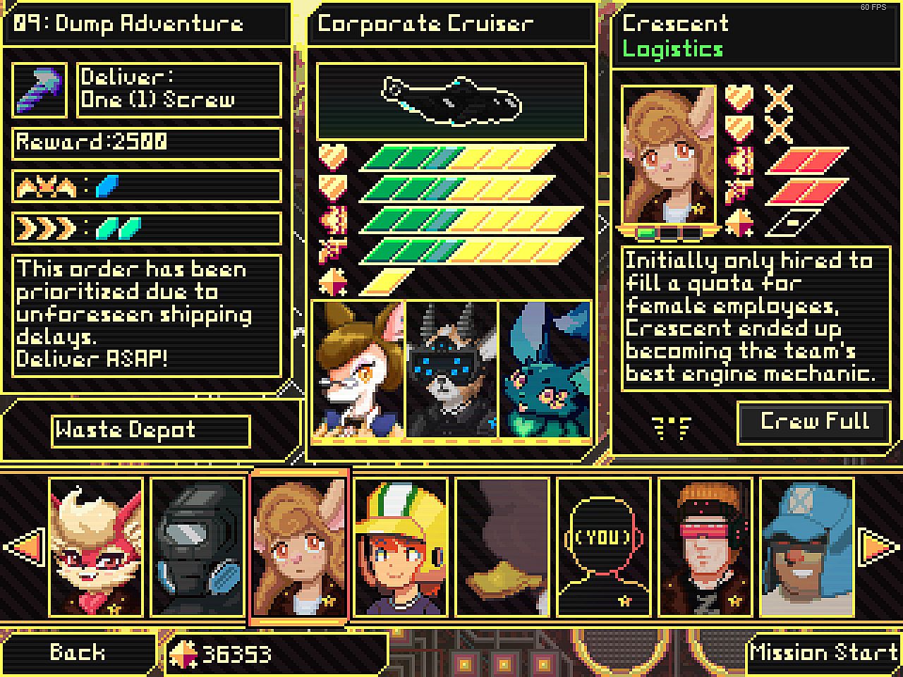 Learn to fly increasingly sophisticated and dangerous shuttles, haulers, and blimps, recruit specialists and contractors into your crew, get your cargo to its destination by any means necessary, and you might just earn enough credits to purchase an early retirement.