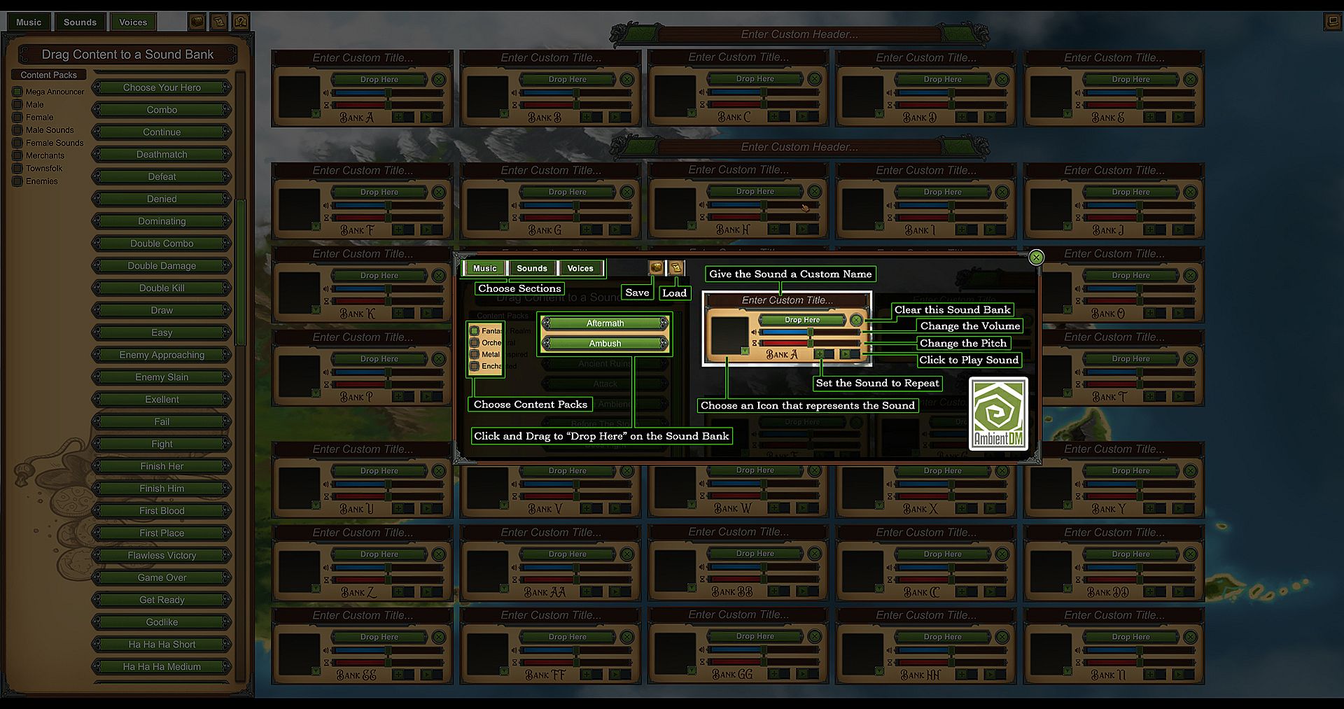 Ambient DM is the next step in immersion at your tabletop. A DM tool to make sound boards that enhance your tabletop gaming sessions. Bring your D&D and Pathfinder game sessions to life!