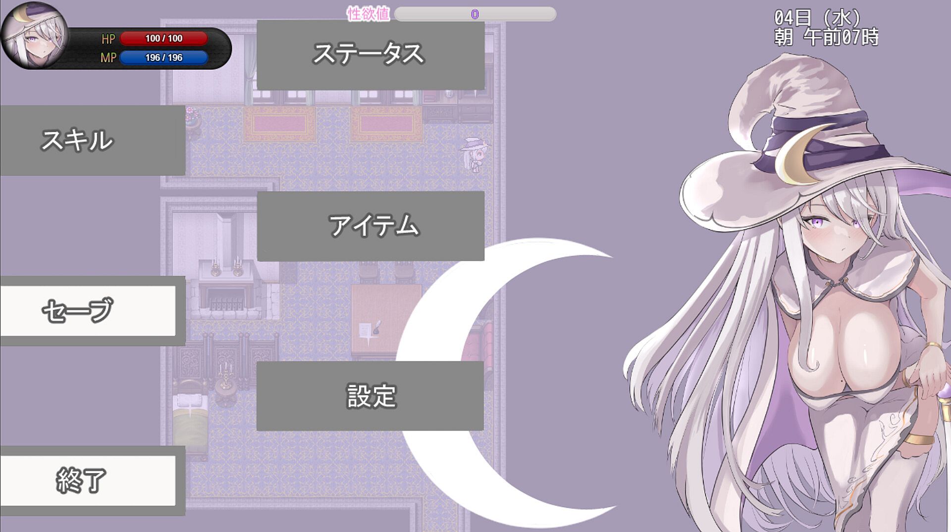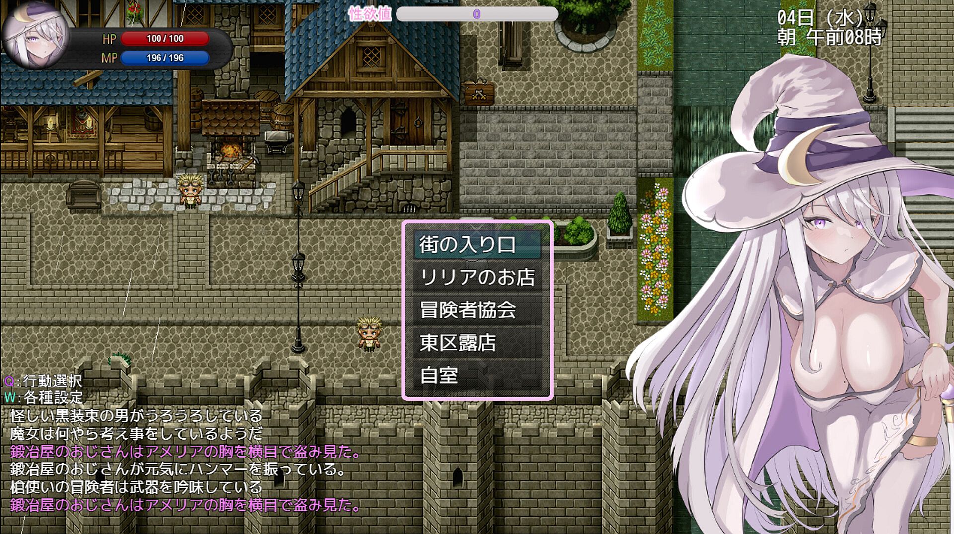Shuttle between the damp, dark, tentacle-filled dungeons and the nearby town, with all sorts of perverted surprises in store for our busty mage.