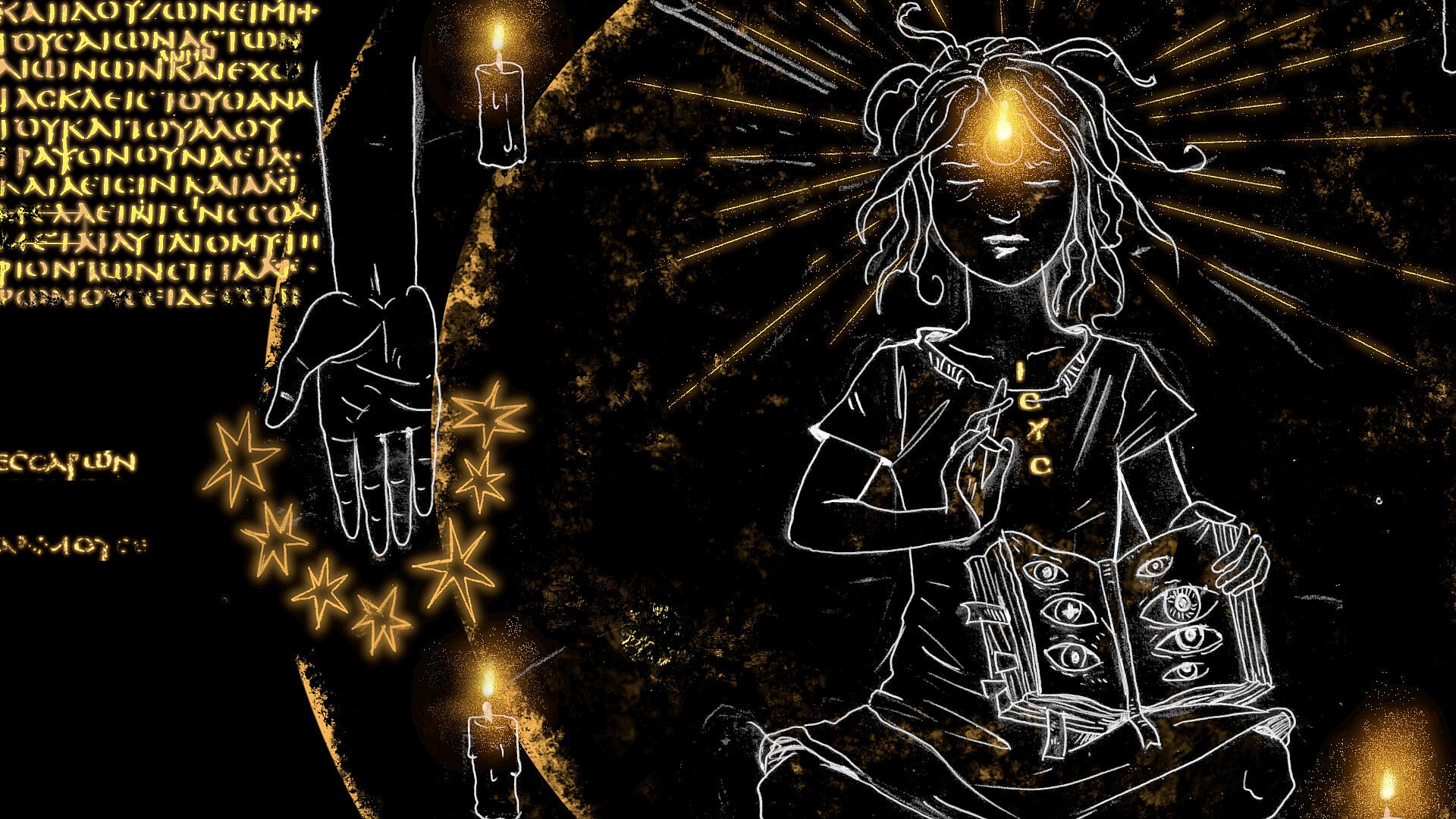 Graphics : Hand-drawn, symbolic, psychedelic