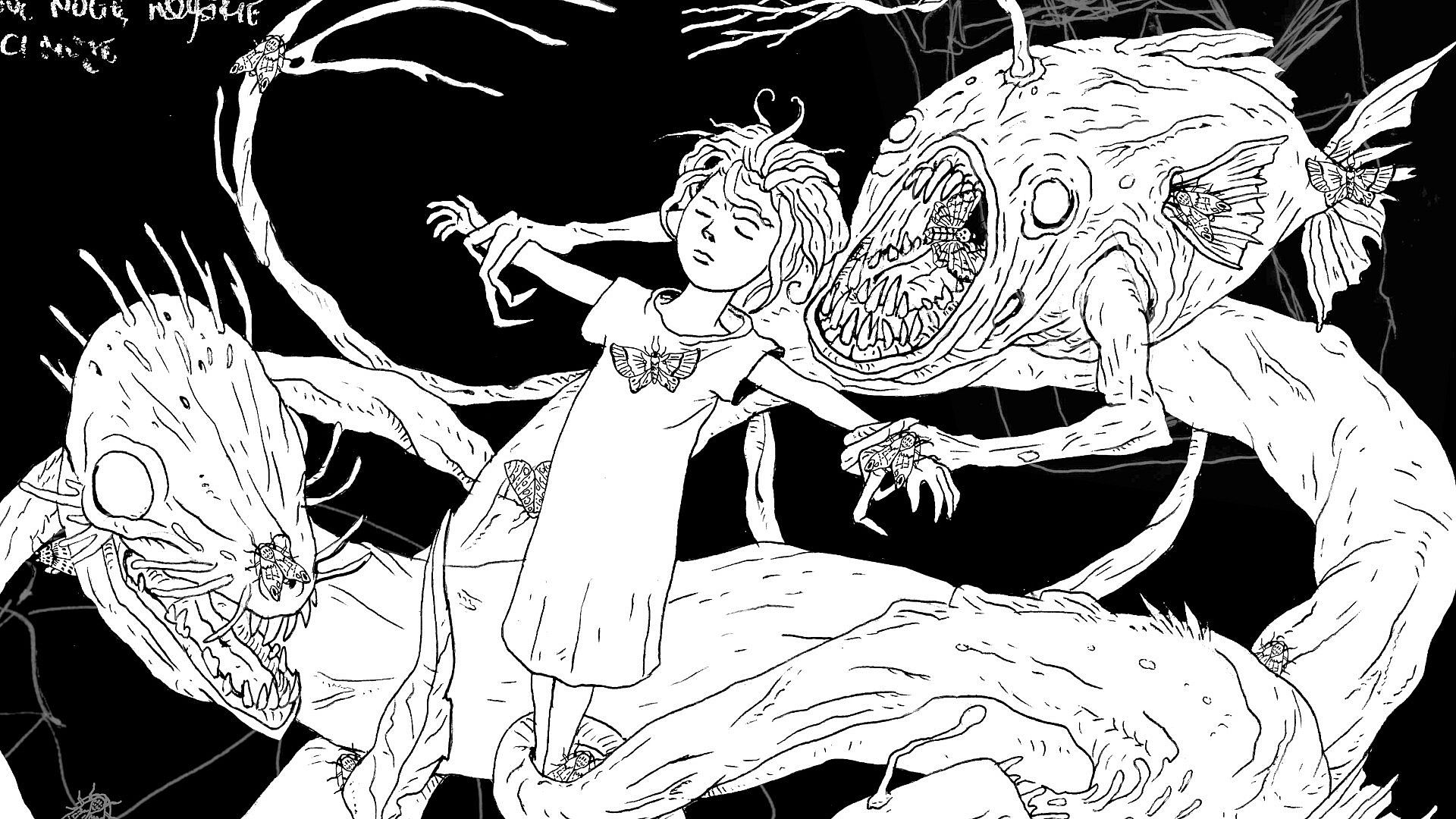 The game touches on themes familiar from Alice in Wonderland, but also delves more into mental instability and spirituality. Hand-drawn