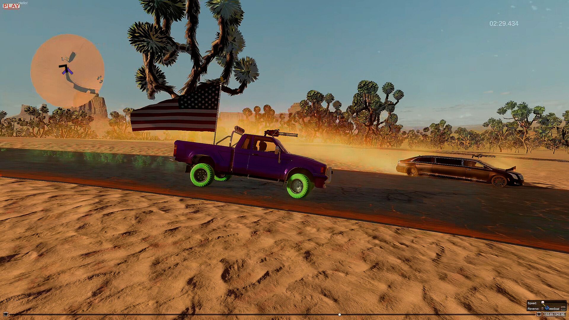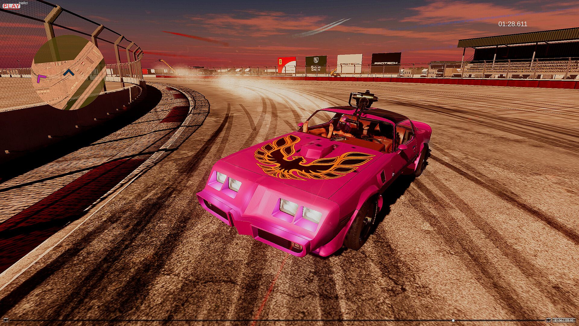 Shooting other cars makes bullet holes and deforms the metal – super satisfying, try shooting any object in the scene (especially other players’ tires).