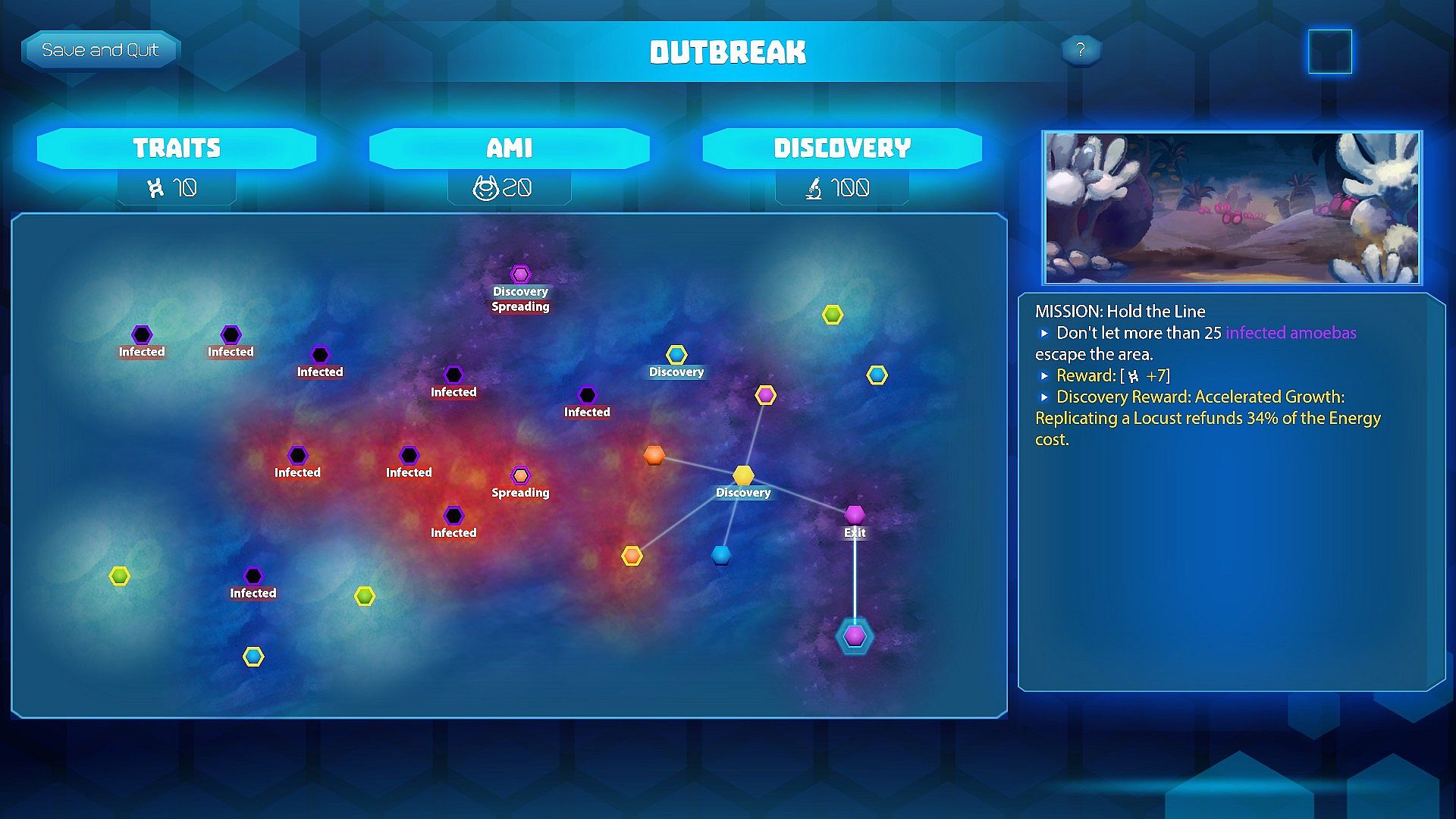 Outbreak is a roguelike RTS campaign mode that can be played solo or co-op with up to two friends. In an Outbreak campaign, you will traverse a randomized microscopic world with dynamically generated missions. Outbreak is designed to have endless replayablity, and no two campaigns will ever play out the same!