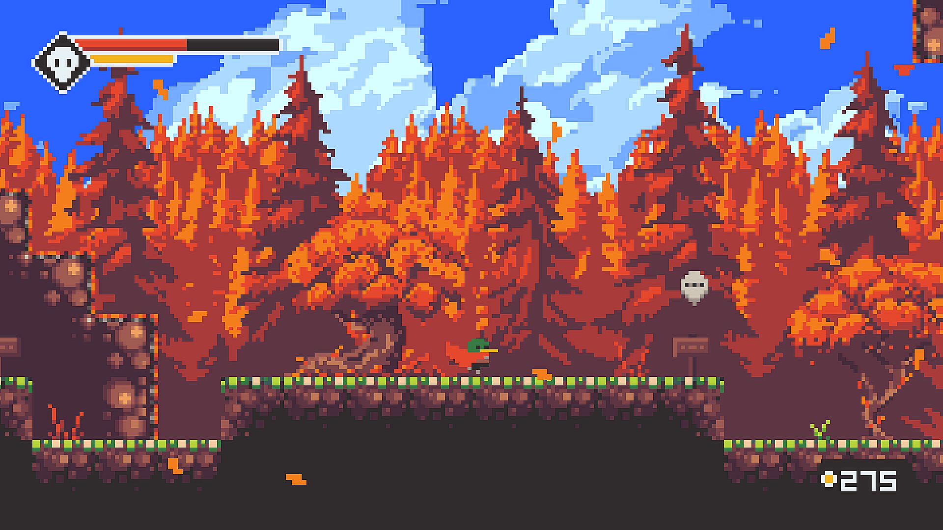 The world contains a variety of environments and landscapes, as the corruption is manifested in unique ways for different enemies. Duck boy will take the fight in ten different locales such as the Ever-Autumn Forest, the Forgotten Grave, and the Poisoned Ruins. Each locale features a unique ecology with a diverse collection of cursed creatures. To help restore the land, Duck boy will also have to defeat the bosses that guard each locale—the Eidolons —watch out for those behemoths!