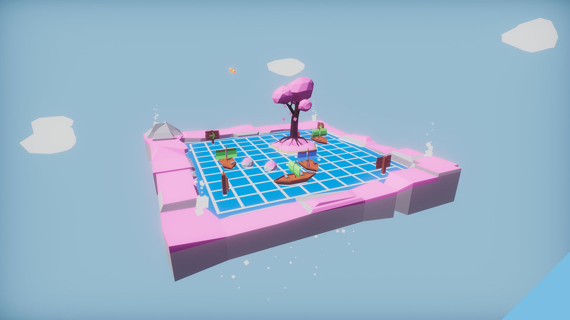 During your turn you can either move your ship or you can use one of your weapons. The enemy ships (AI) will all then take their turn with the same two options. In the next phase, if any weapons were used by the player or the enemy in the previous phases they will be triggered/updated, for example cannon balls moving or lasers firing. Where you place your weapons is also important, so you can correctly align your weapon with an enemy! These core gameplay mechanics are then built upon with new environmental objects, varying enemies/weapons and much more in order to add layers of complexity towards the end levels!The movement in Anchor Up is a key part of the puzzle: your ship takes up two tiles, the front of your ship and the back of your ship. This means that thinking ahead is key to victory. When moving tiles, your boat rotates to face the direction you just moved, careful manoeuvring and navigation is vital! If you get a hit by a weapon or an enemy is in an adjacent tile (your ship being boarded) you fail the level.